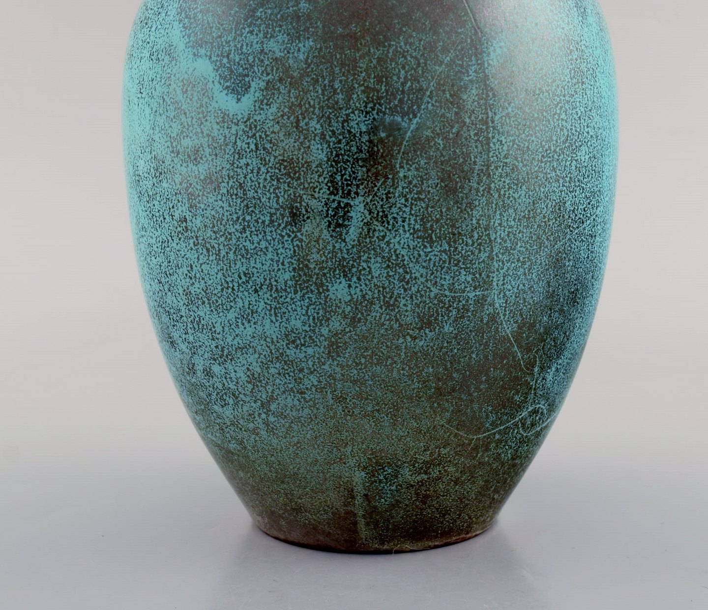 Richard Uhlemeyer, Tyskland. Vase i glaseret keramik. Smuk krakeleret glasur i turkis nuancer. 1950'erne. Måler: 24,5 x 14 cm. I flot stand. Stemplet.