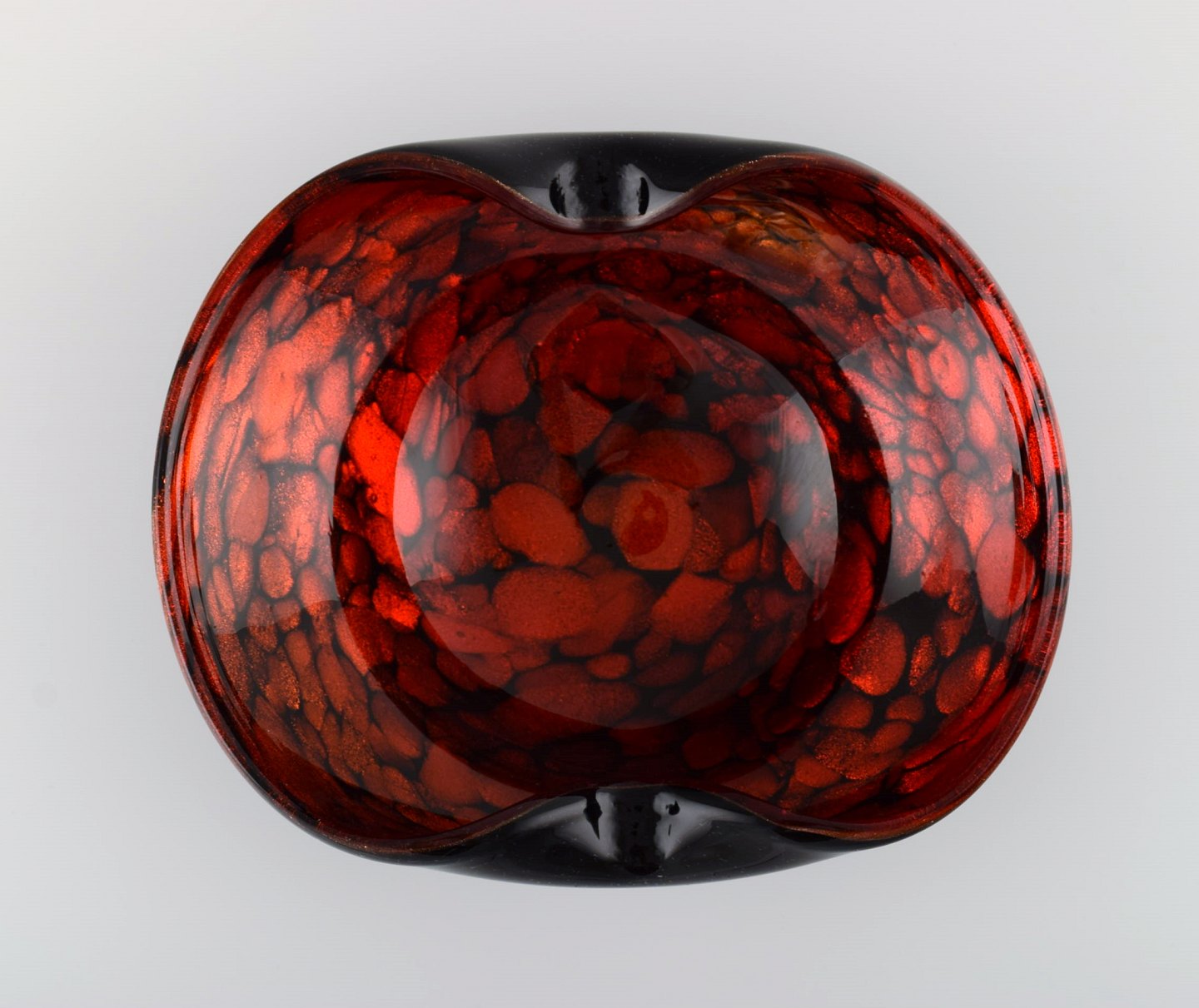 Murano skål i sort og rødt mundblæst kunstglas. Italiensk design, 1960'erne.