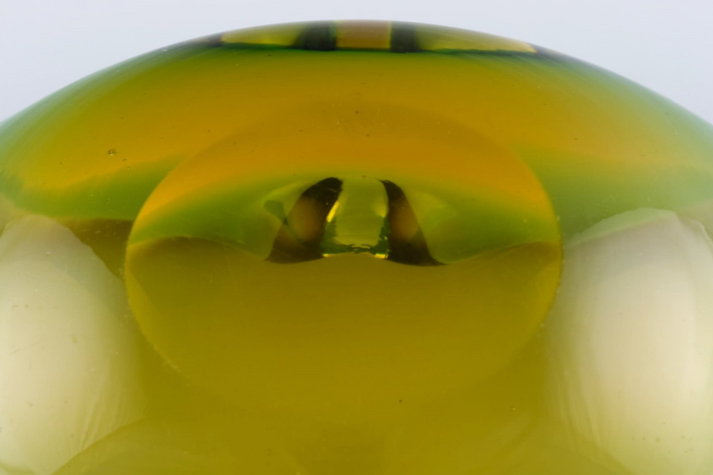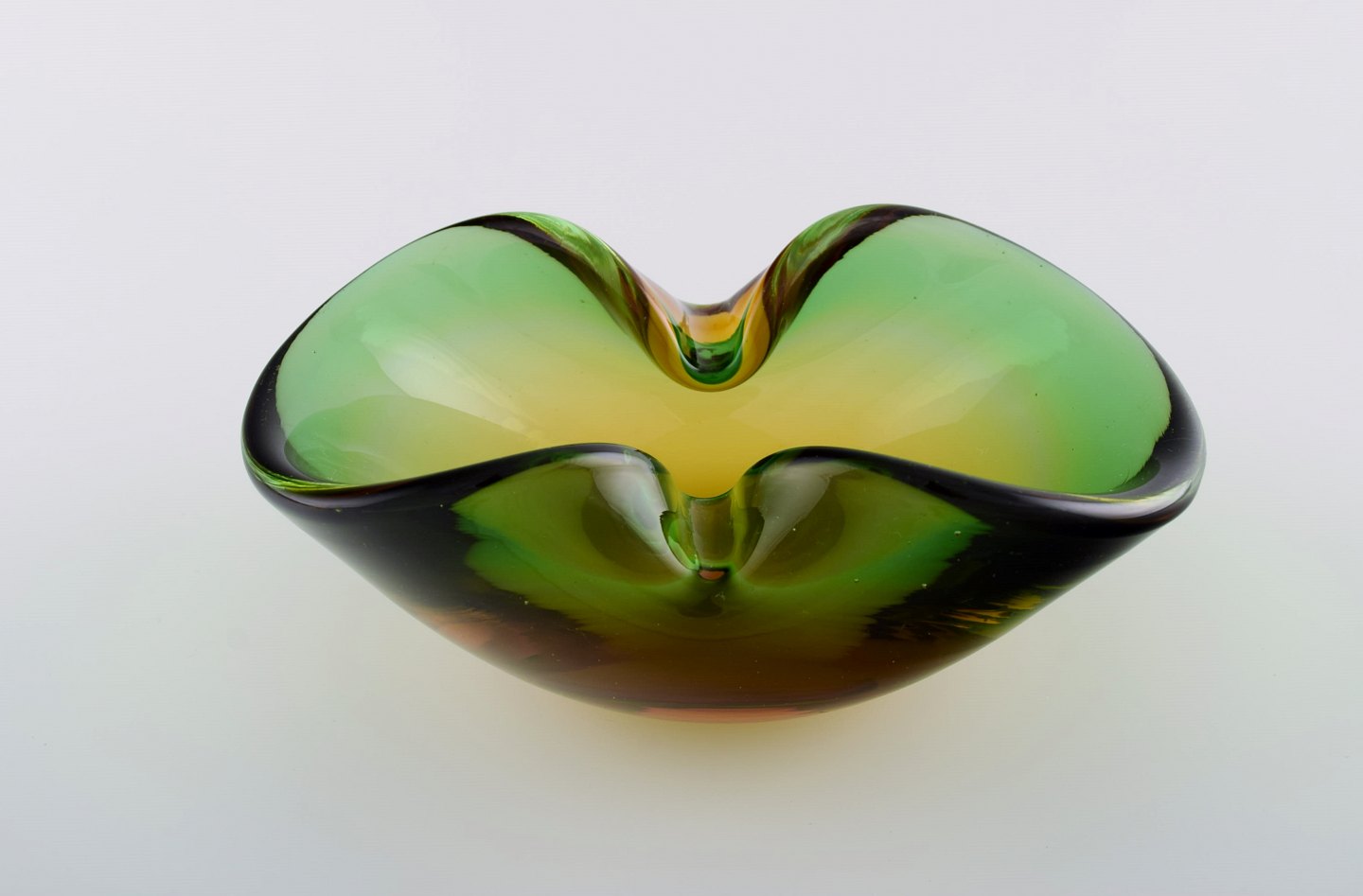 Murano skål i grønligt mundblæst kunstglas. Italiensk design, 1960'erne. Måler: 18 x 7,2 cm. I perfekt stand.