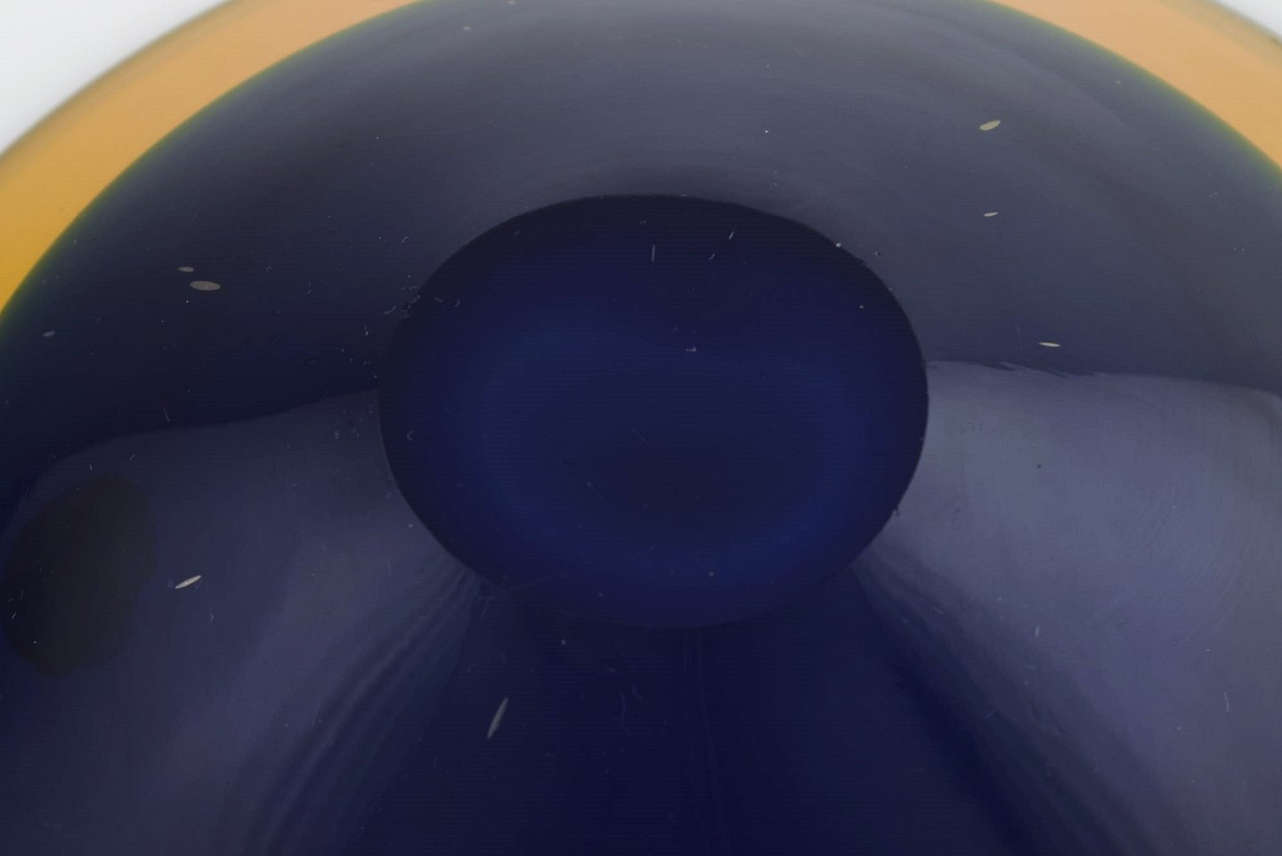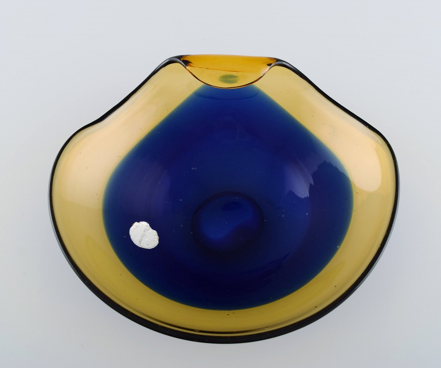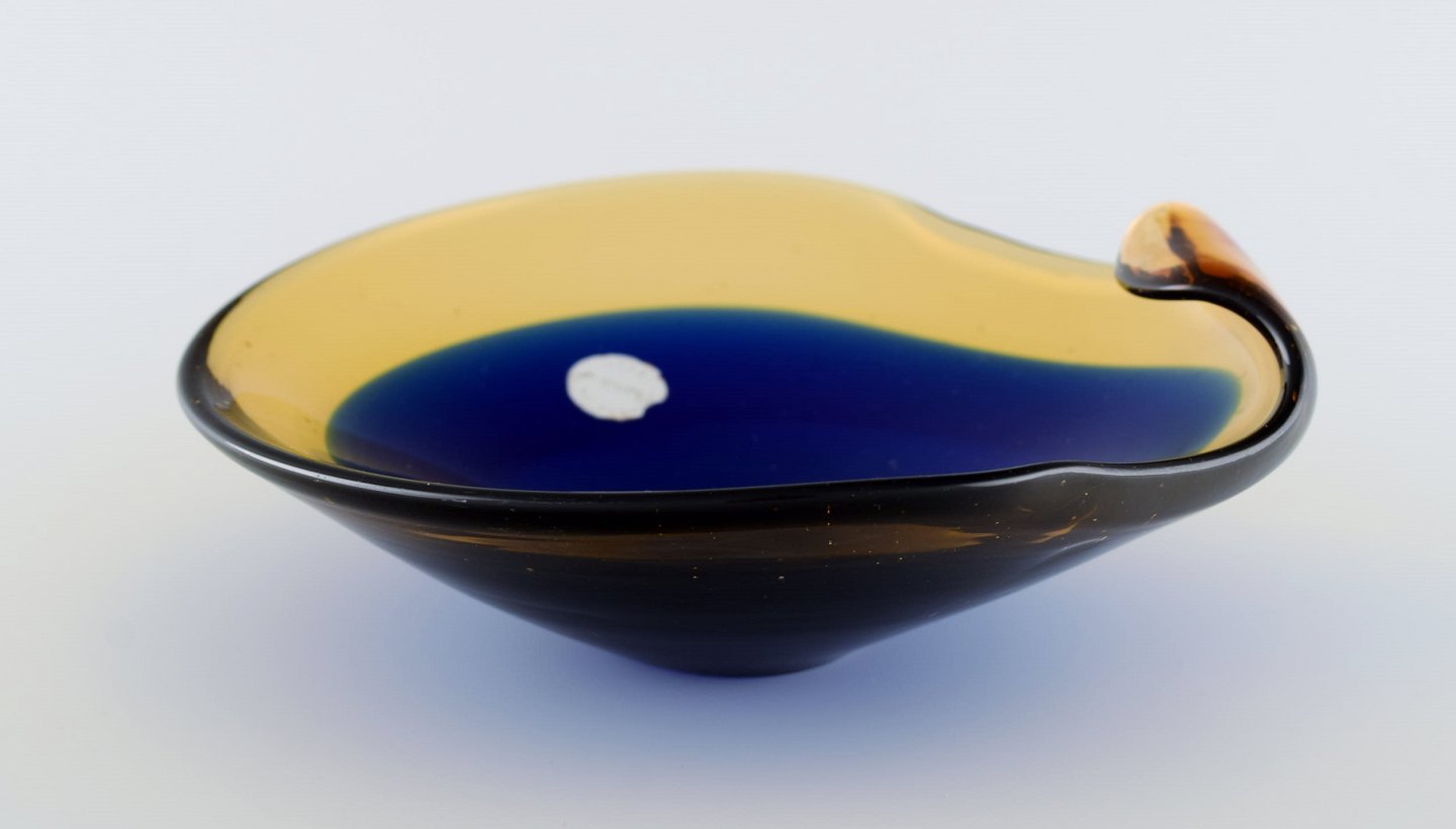 Murano skål i blåt og røgfarvet mundblæst kunstglas. Italiensk design, 1960'erne.