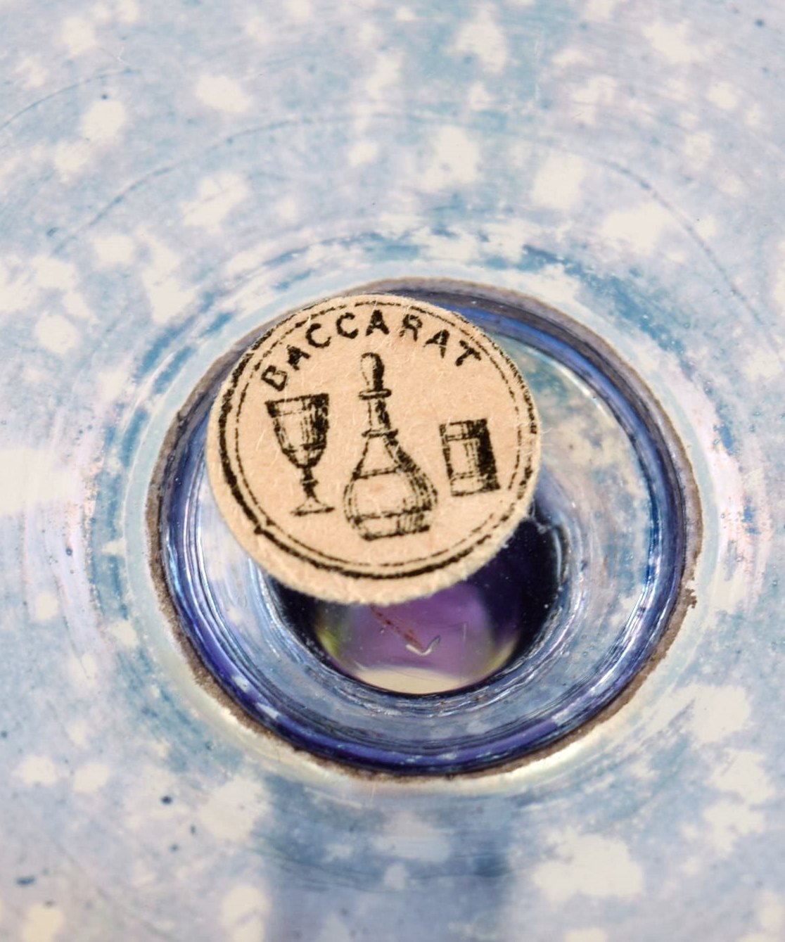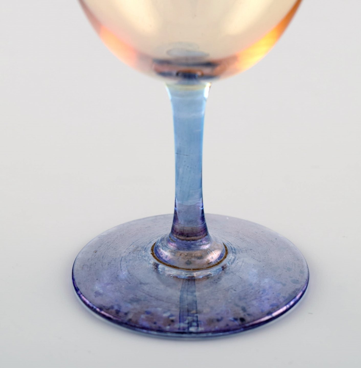 Baccarat, Frankrig. Otte sjældne glas i blåt og røgfarvet kunstglas. Midt 1900-tallet. Måler: 11 x 5 cm. I flot stand. Mærkat.