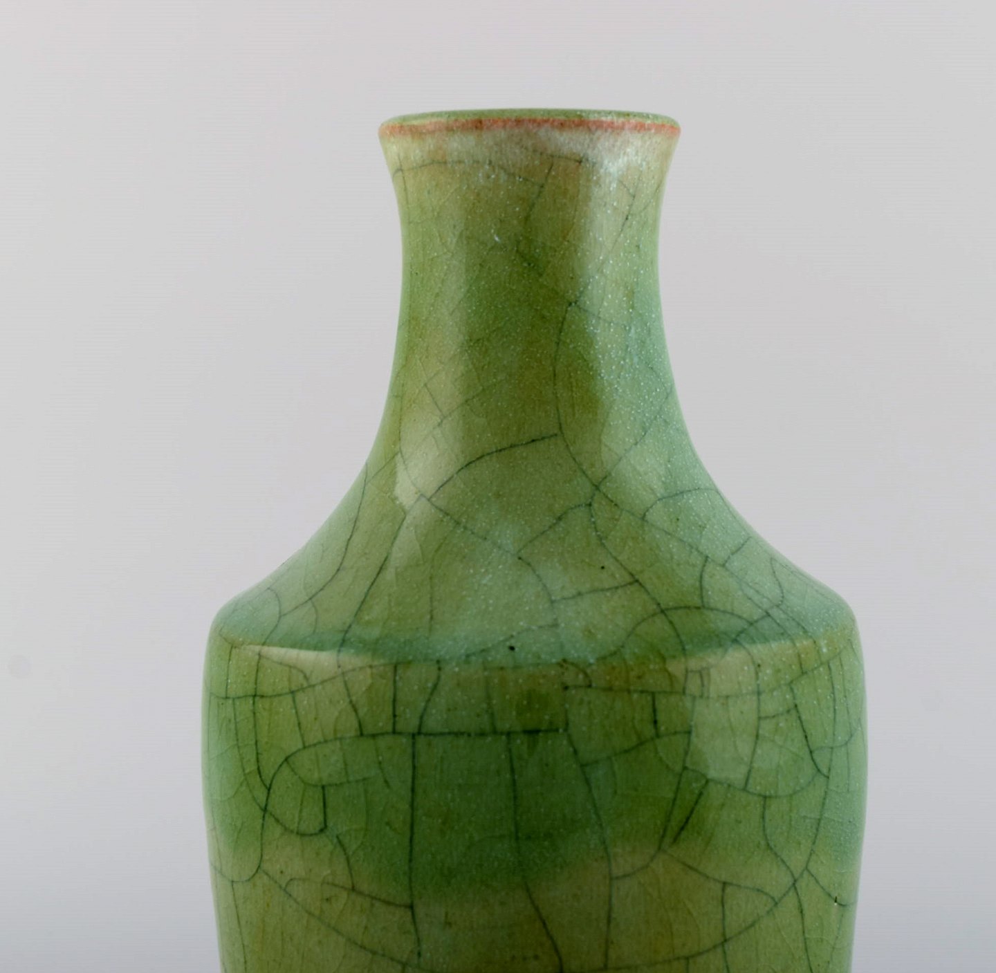 Christian Poulsen (1911-1991), Danmark. Unika vase i glaseret keramik. Smuk krakkeleret glasur i grønne nuancer. Ca. 1950.