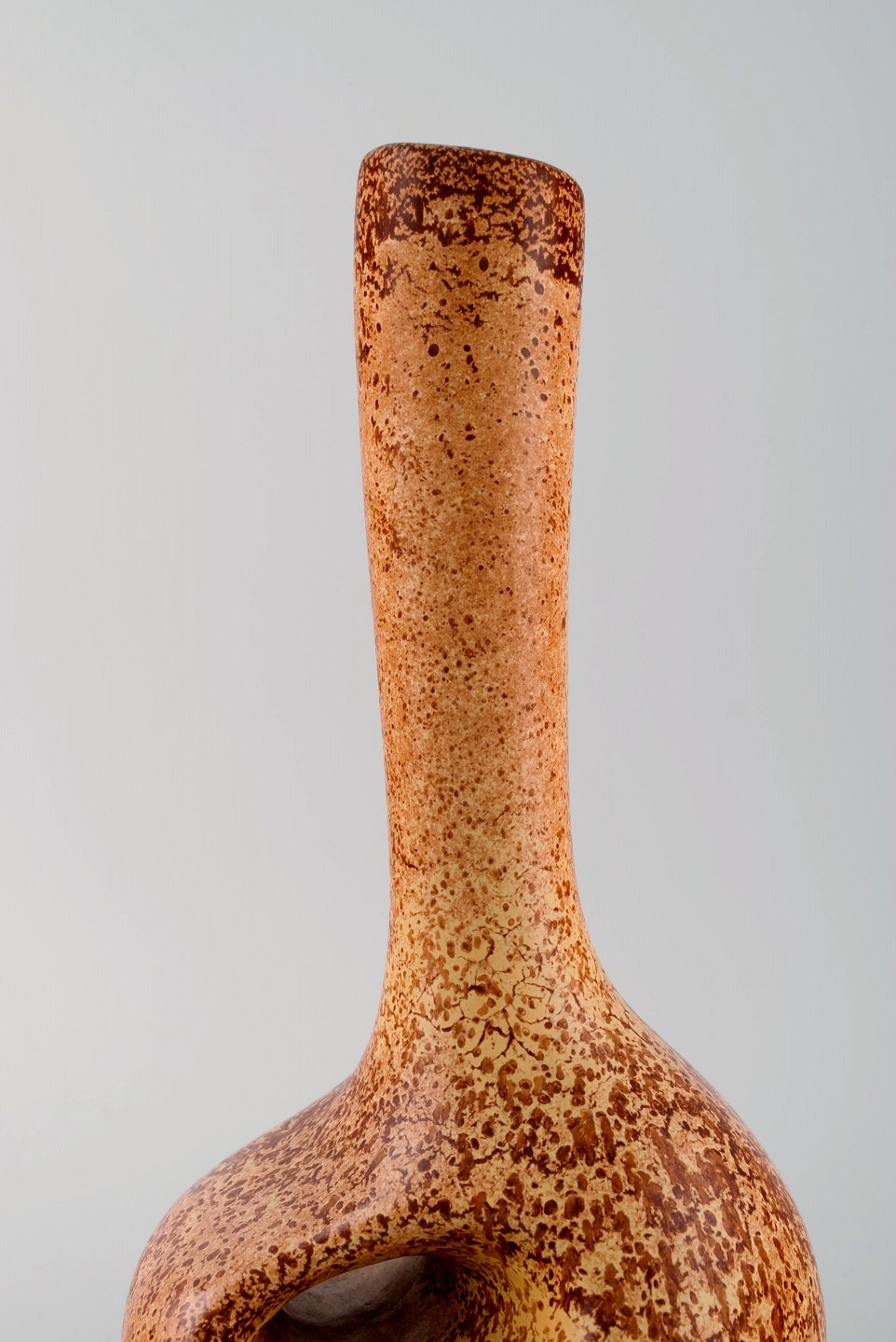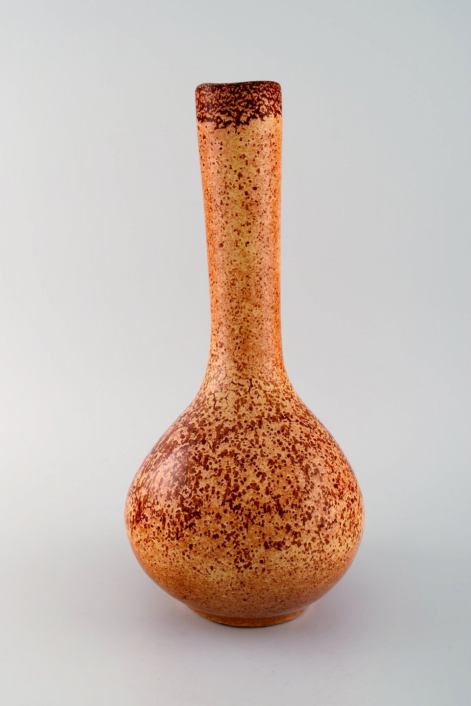 Rigon, Roberto for Bertoncello ceramiche d'arte. Vase i glaseret keramik. Smuk spættet glasur i mørk orange og rødbrune nuancer. Italien, 1960/70'erne.