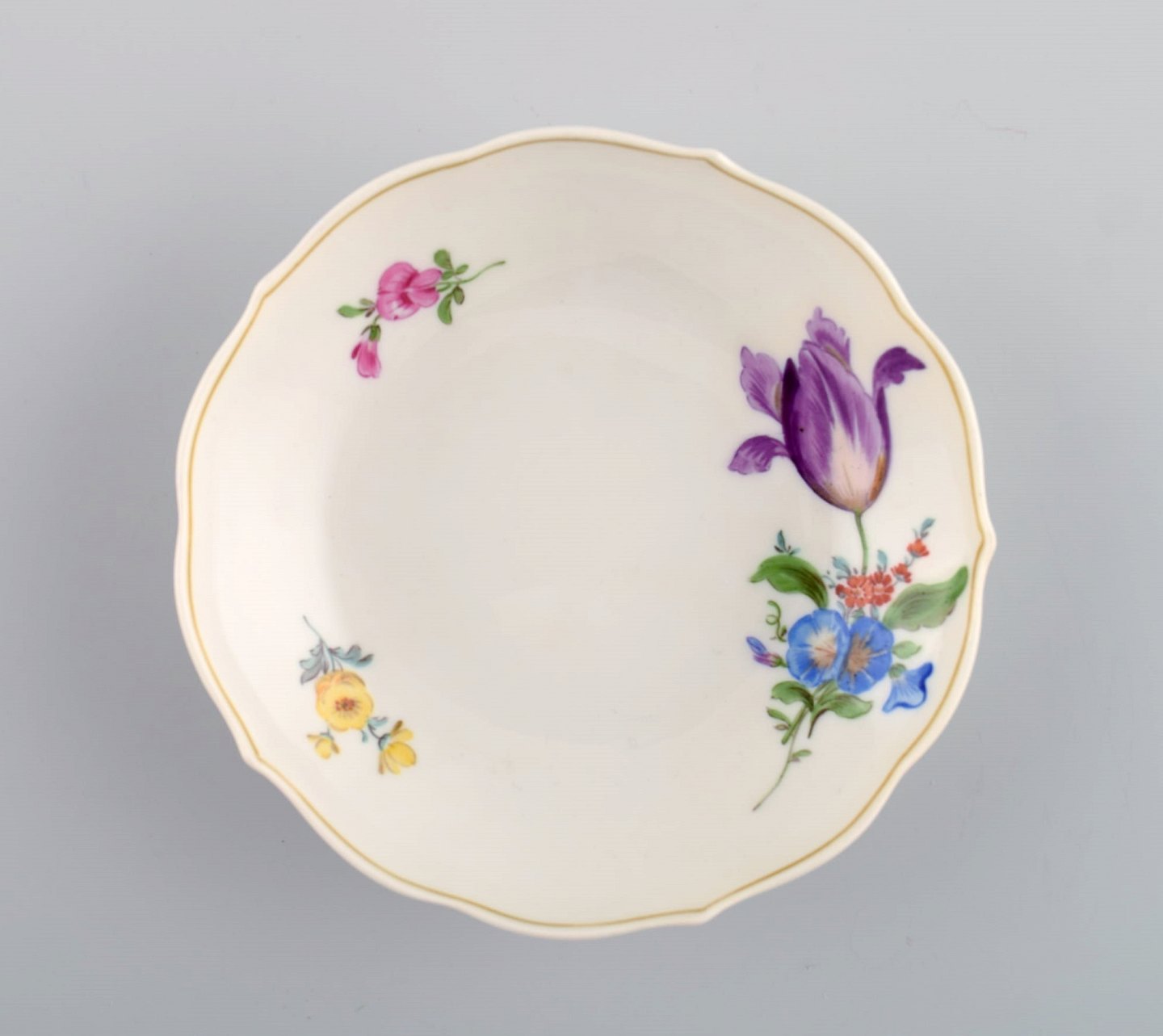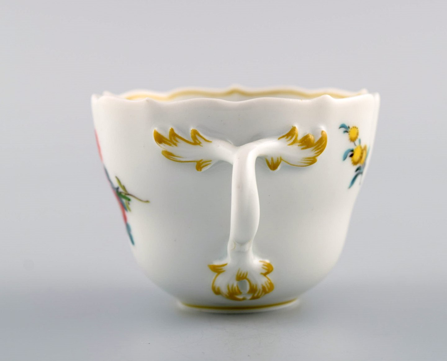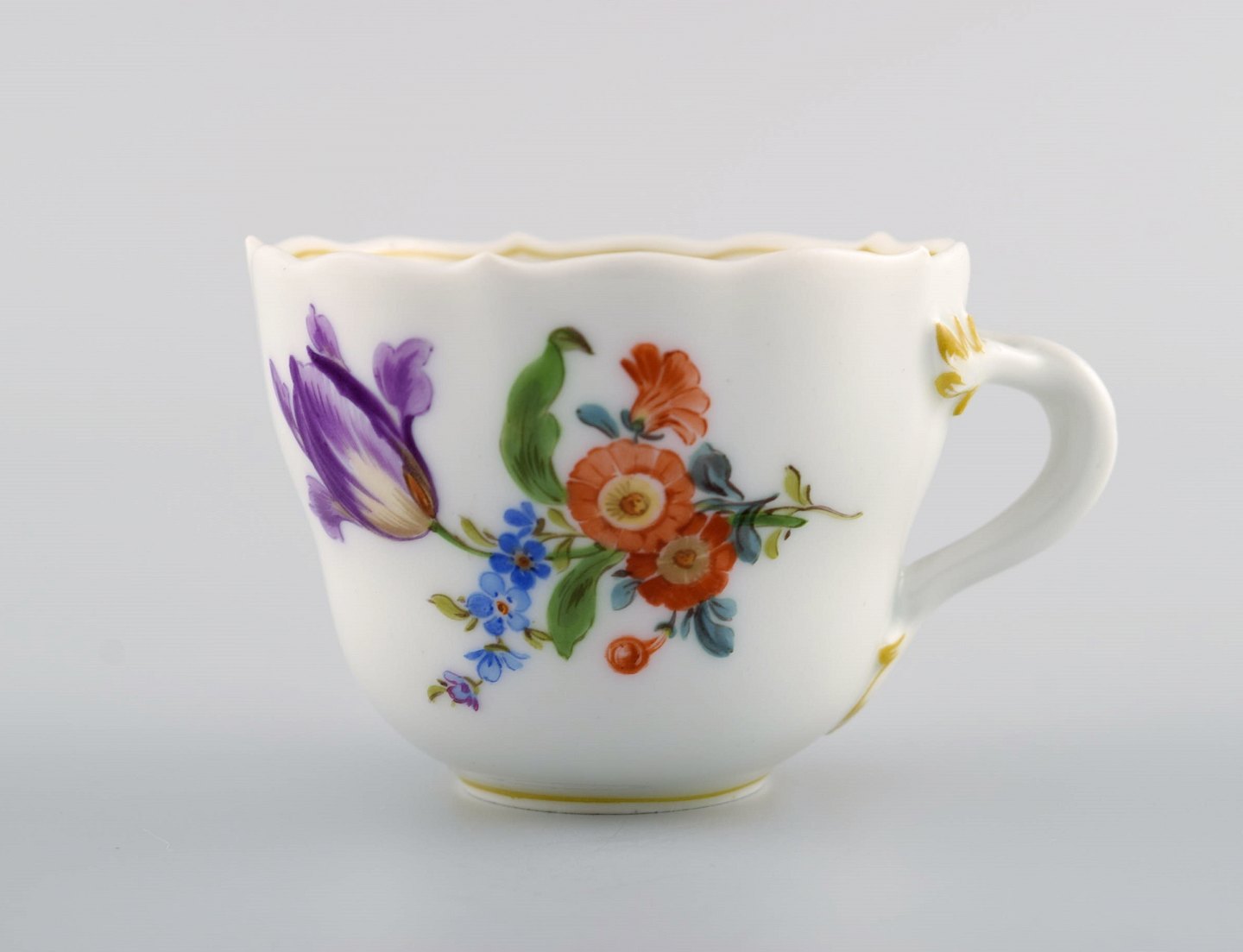 Antique Meissen coffee cup with saucer in hand-painted porcelain with floral motifs. 19th century.