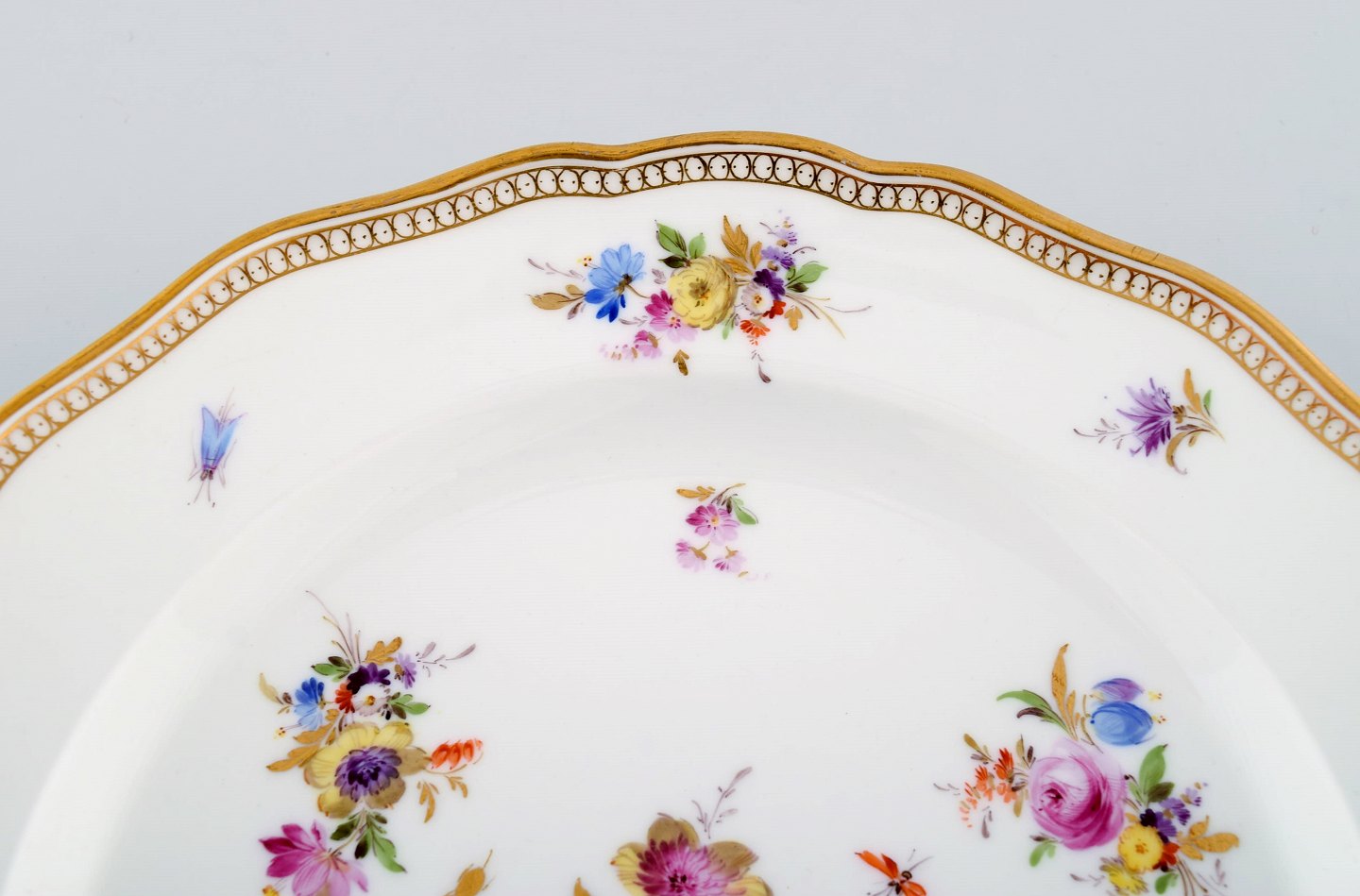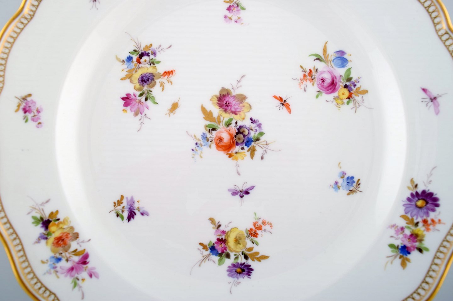 Meissen tallerken i håndmalet porcelæn med blomster og guldkant. 1900-tallet.