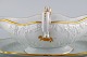 Meissen sauce boat in porcelain with flowers and foliage in relief and gold decoration. 20th century. Three pieces in stock. Measures: 26.5 x 10 cm. 1st factory quality. In very good condition. Stamped.