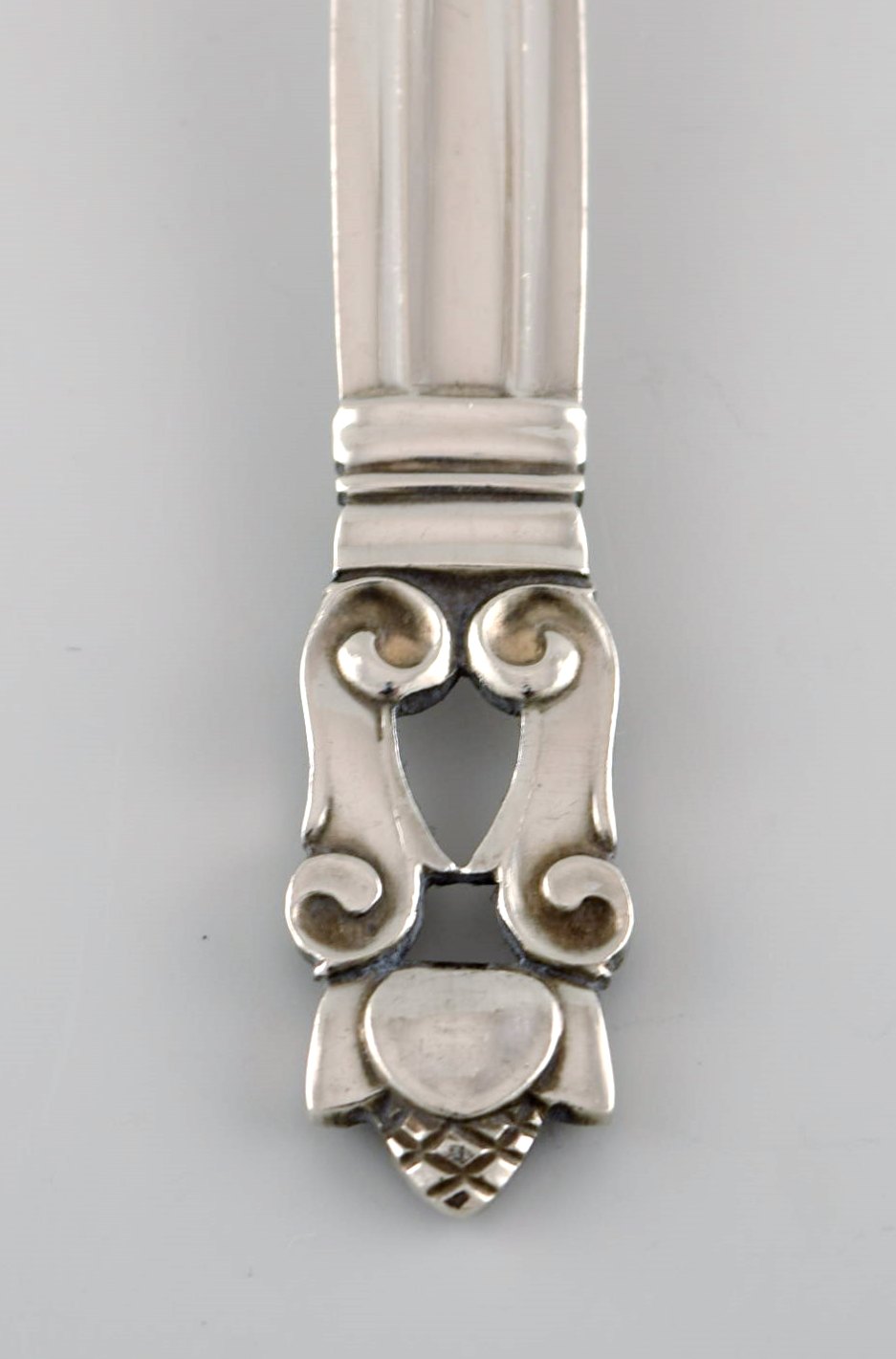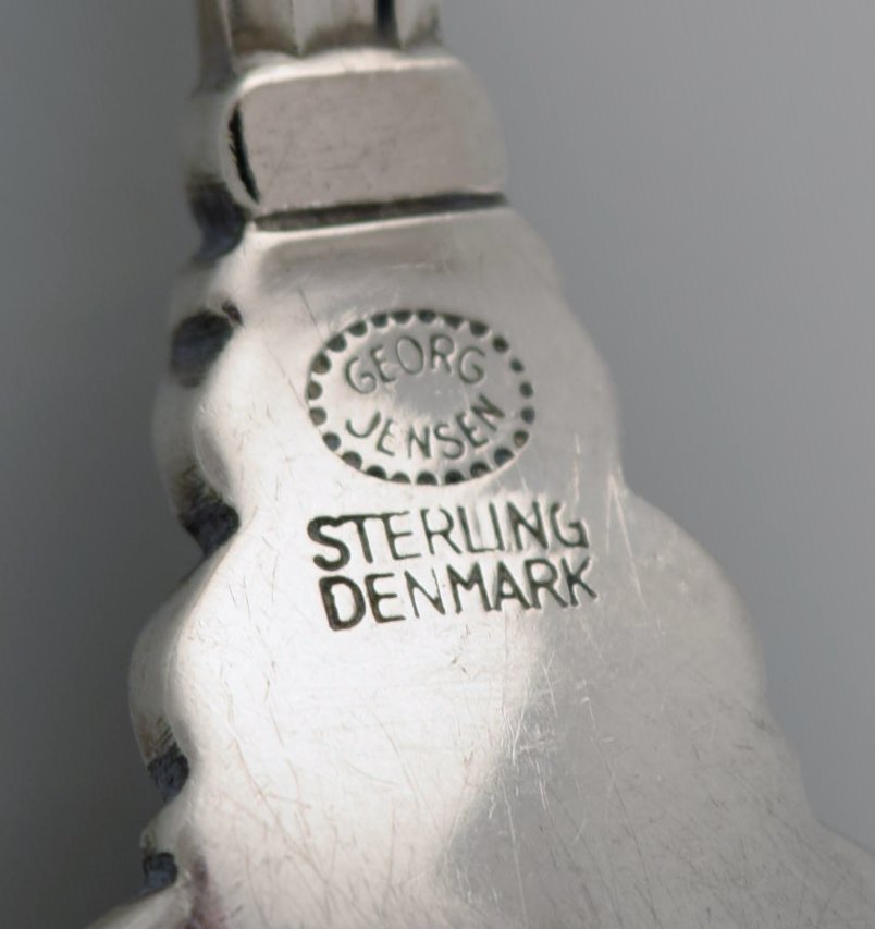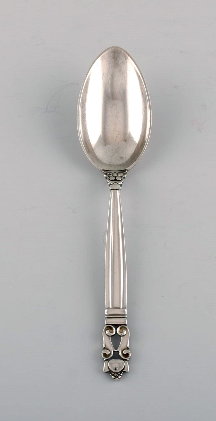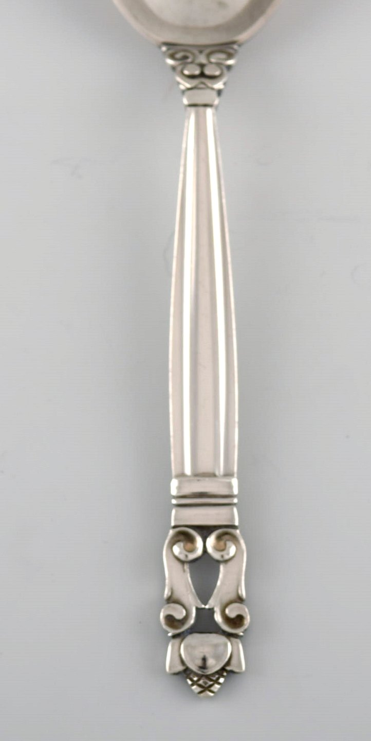 Georg Jensen Acorn dessert spoon in sterling silver. 6 pcs in stock. Length: 17.3 cm. In very good condition. Stamped.