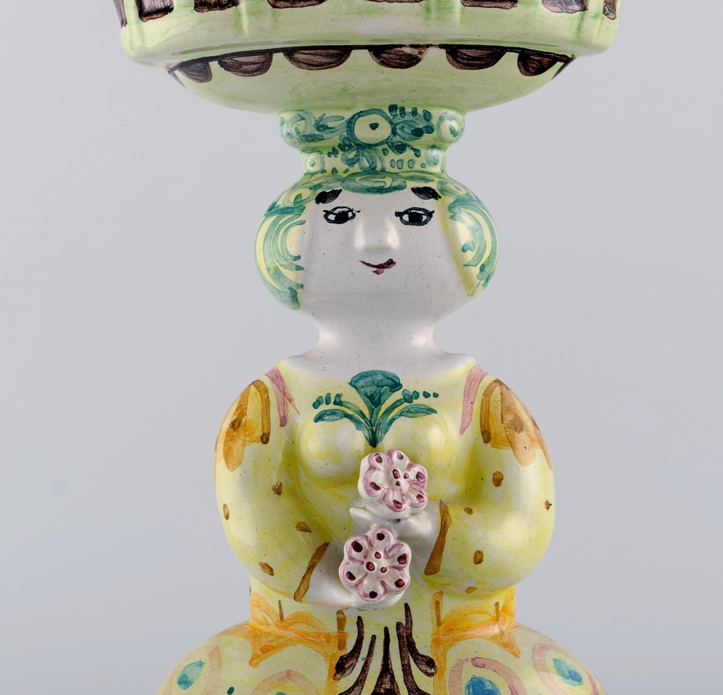 Bjørn Wiinblad 1918-2006. Figur af glaseret keramik i form af kvinde. Dateret 1983.