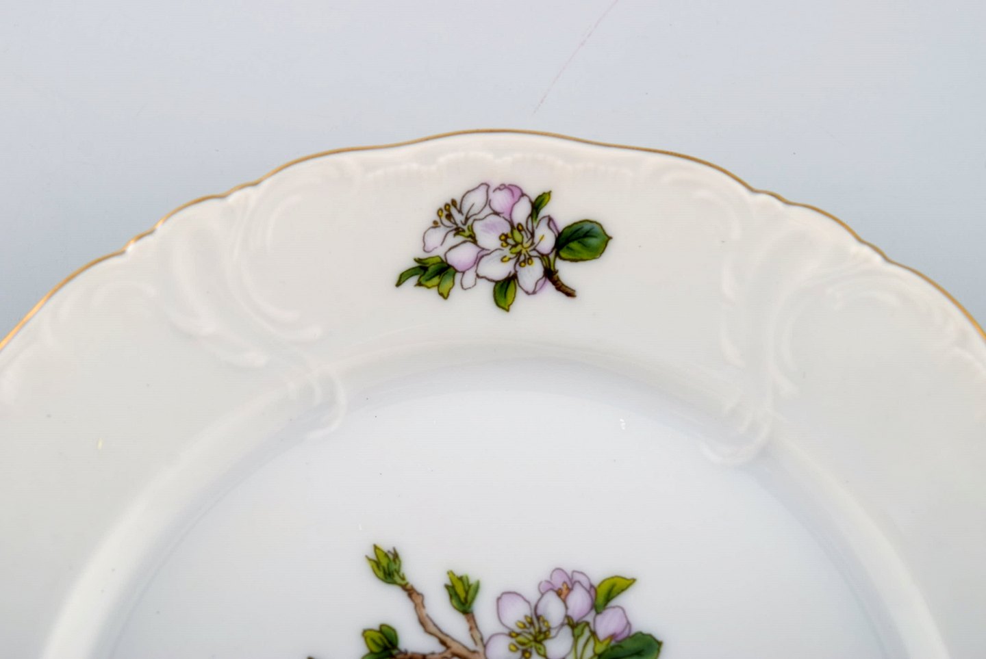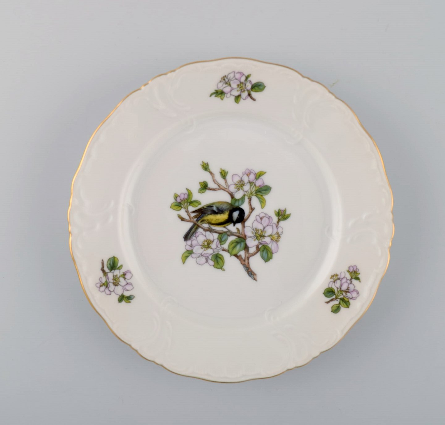 10 Royal Copenhagen "Forår" tallerkener i porcelæn med motiver af fugle og bladværk. 1980'erne. Modelnummer: 1533/2519. Diameter: 15,5 cm. I flot stand. Stemplet. 1. Sortering.