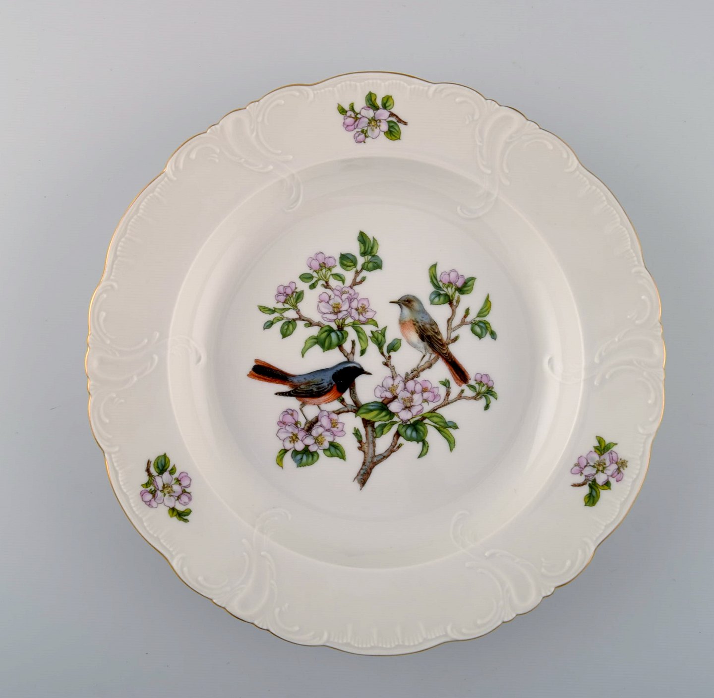 8 Royal Copenhagen "Forår" dybe tallerkener i porcelæn med motiver af fugle og bladværk. 1980'erne. Modelnummer: 1533/2513.