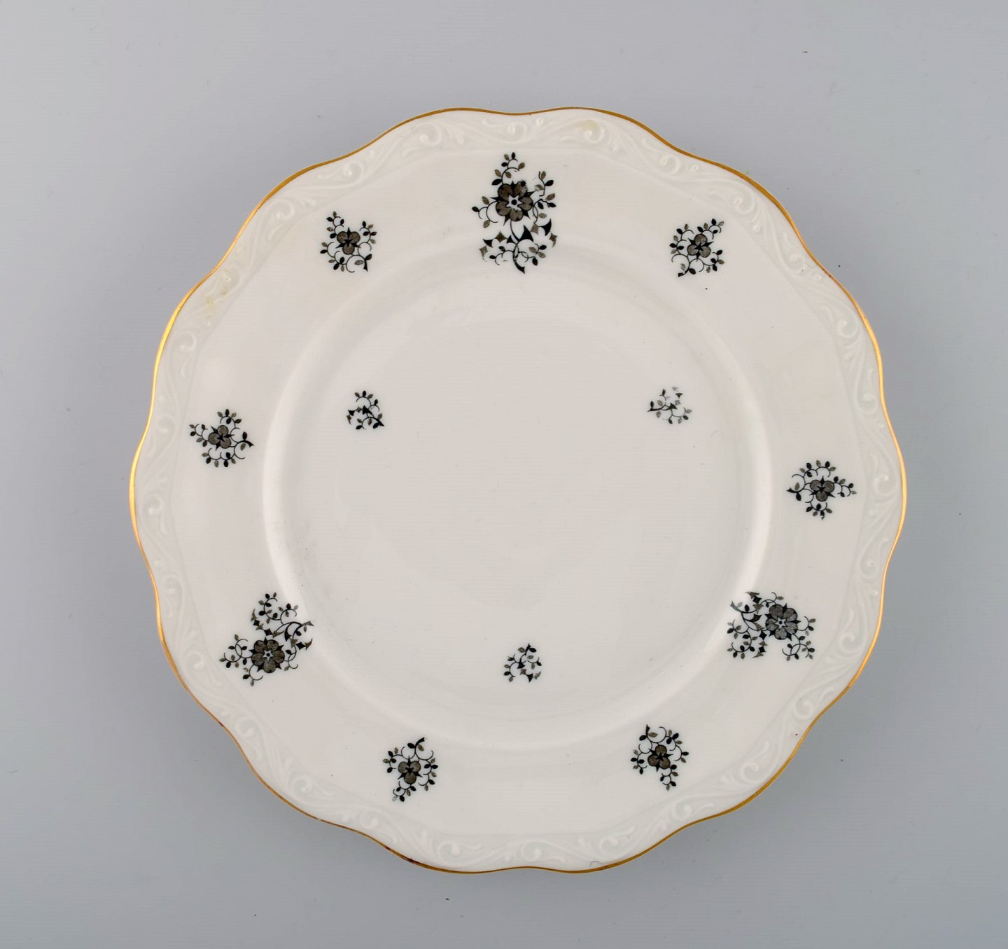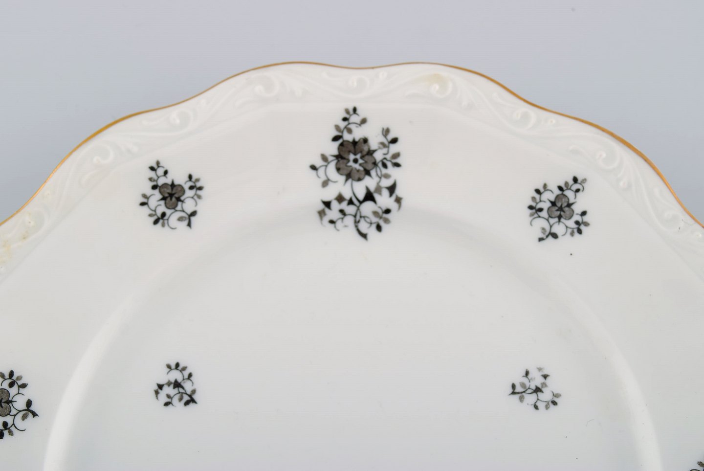 KPM, Kjøbenhavns Porcelæns Maleri. 11 Rubens frokosttallerkener i porcelæn med blomstermotiver, guldkant og snirkler i relief. 1940'erne. Diameter: 21,5 cm. I flot stand. Stemplet.