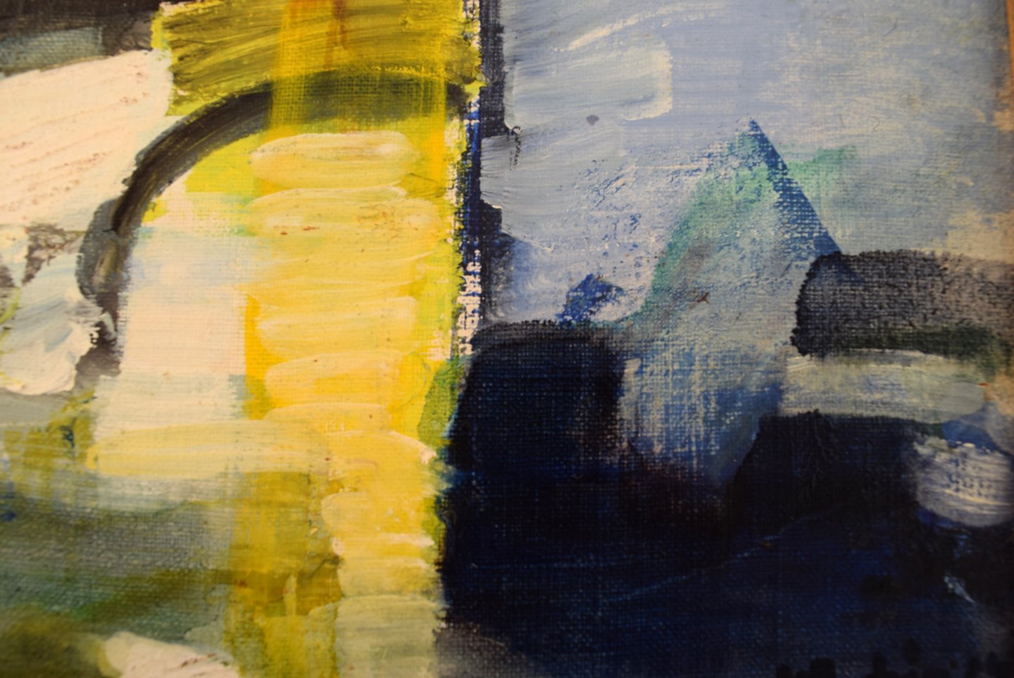 Kjell Högström, Sverige. Olie på plade. Modernistisk landskab. Dateret 1967. Pladen måler: 43,5 x 30,5 cm. Rammen måler: 2 cm. I flot stand. Signeret og dateret.