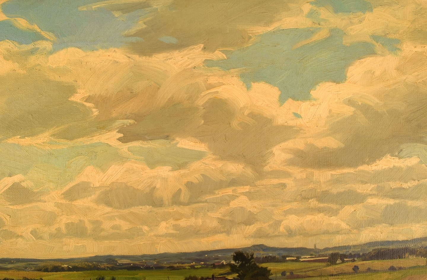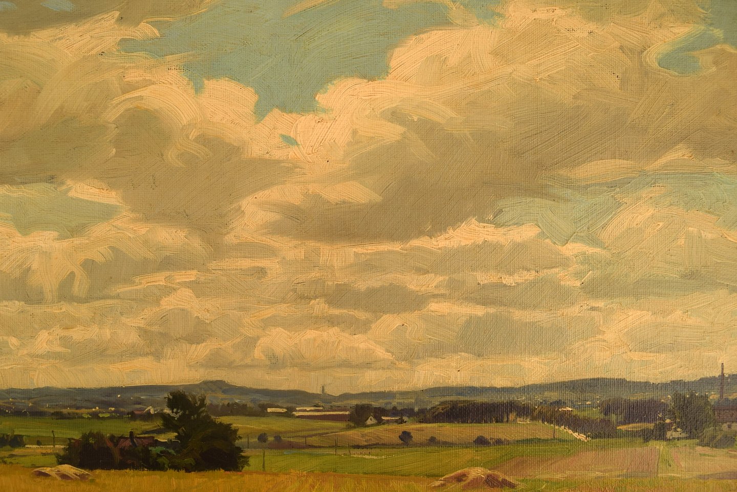 Knud Edsberg (1911-2003), Danmark. Olie på lærred. Landskab. Dateret 1948. Lærredet måler: 64 x 49 cm. Rammen måler: 8 cm. I flot stand. Signeret og dateret.