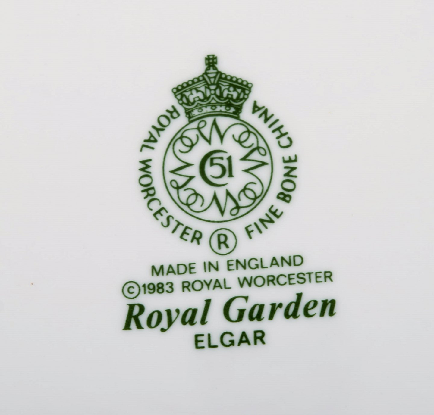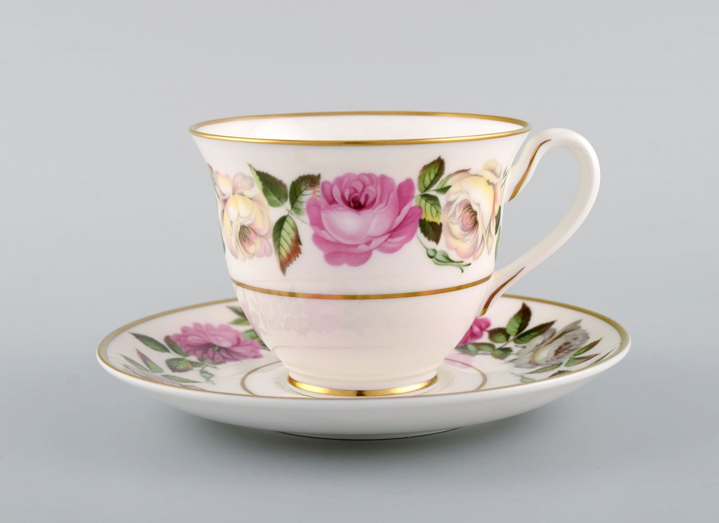 Royal Worcester, England. Komplet teservice til syv personer i porclæn med blomstermotiver. Dateret 1983.