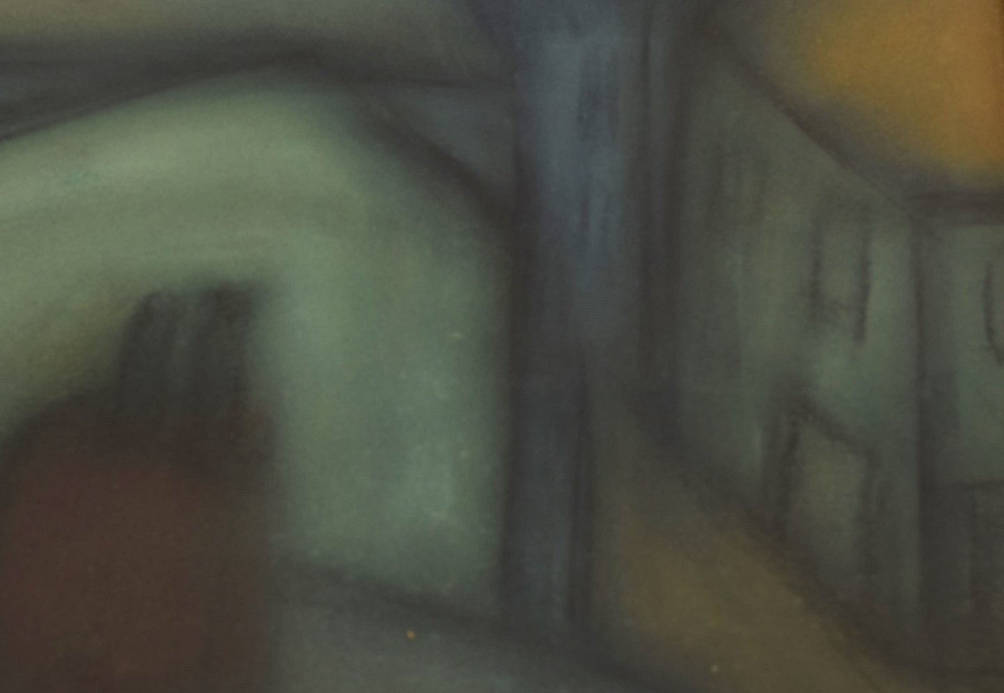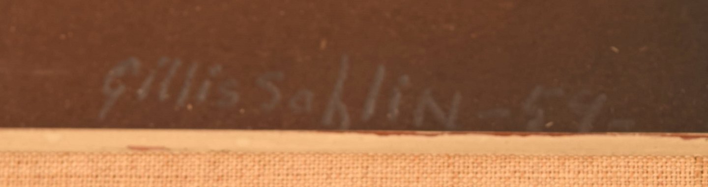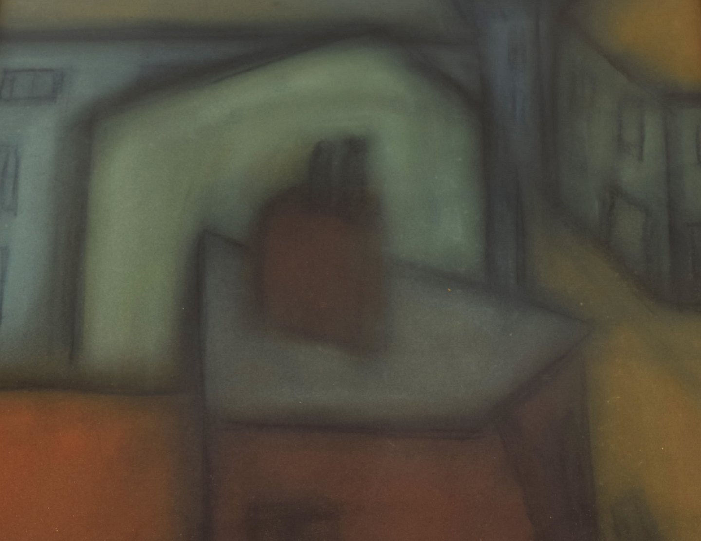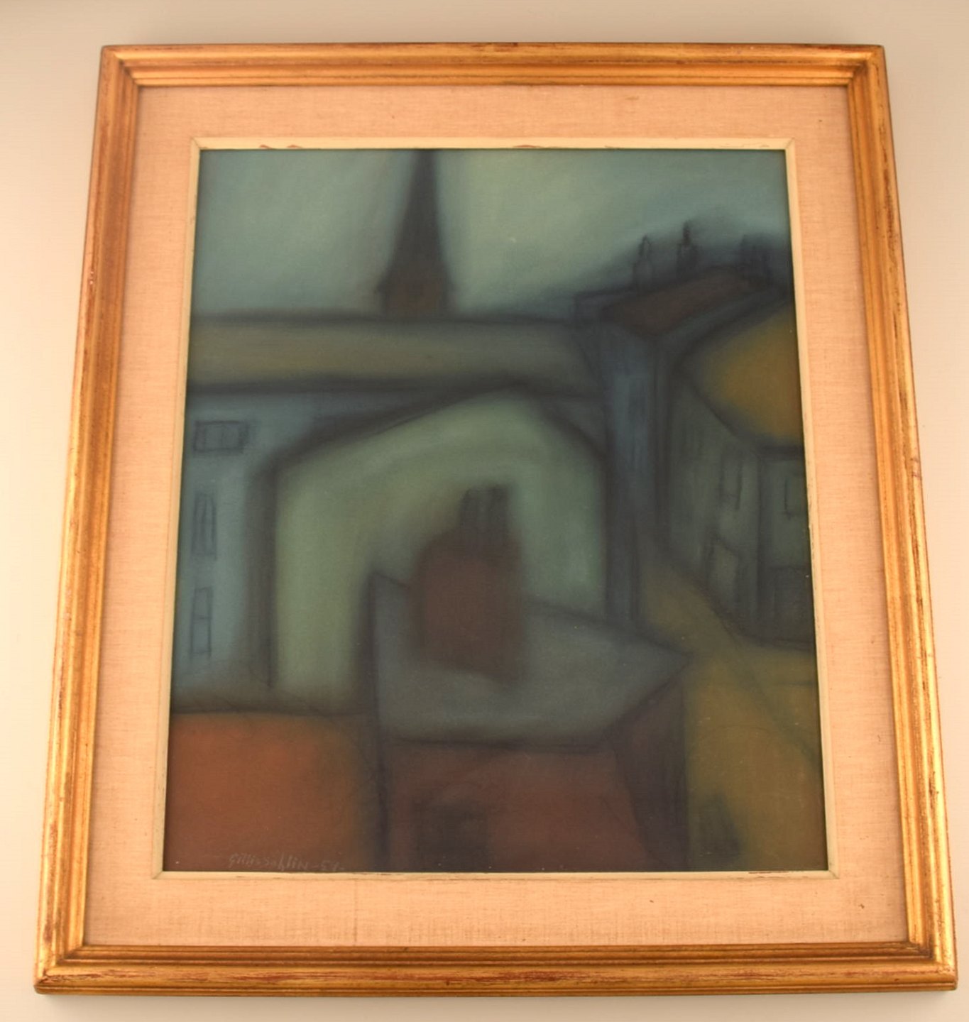 Gillis Sahlin (1901-1984), Sverige. Pastel. Modernistisk bymotiv. Dateret 1954.