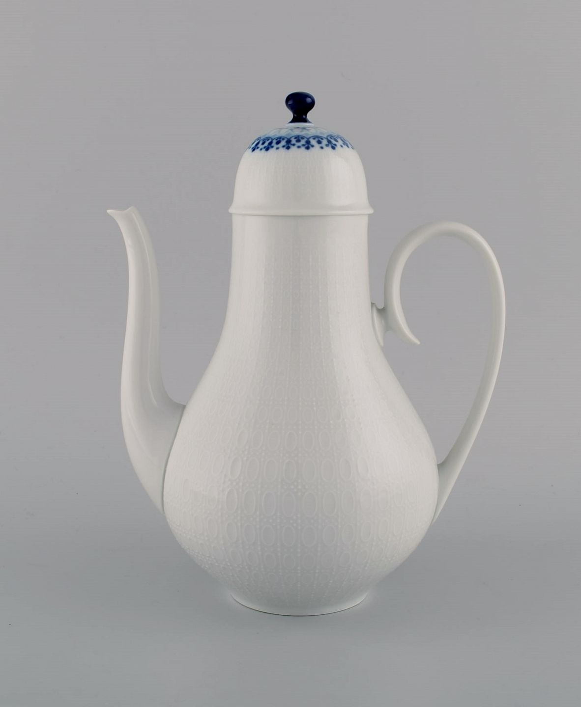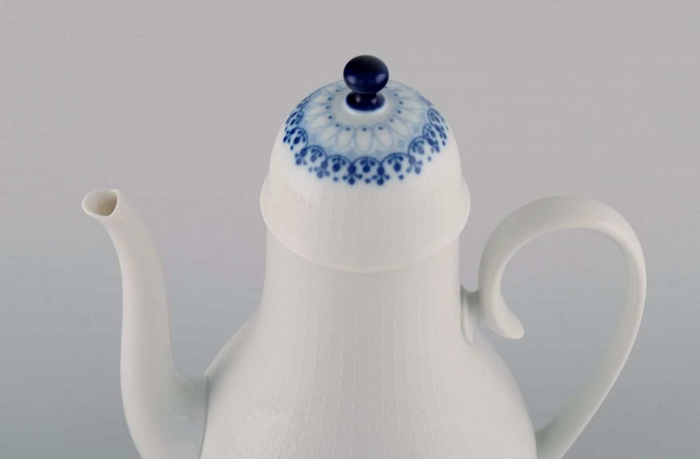Bjørn Wiinblad for Rosenthal. Romanze kaffeservice i hvid porcelæn med blå dekoration til tolv personer. 1980'erne.