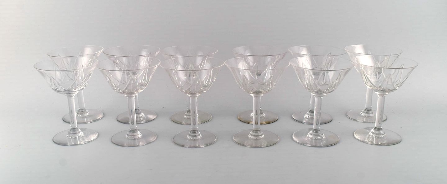 St. Louis, Belgien. Tolv champagneglas i mundblæst krystalglas. 1930/40'erne. Måler: 12,5 x 9,8 cm. I flot stand.