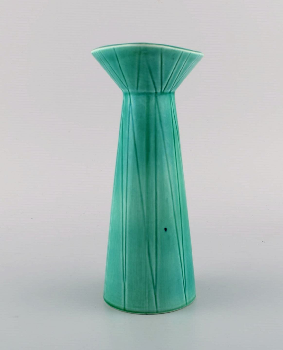 Rörstrand, Sverige. Kande i glaseret keramik. Smuk glasur og indridset dekoration. 1960'erne. Måler: 20 x 13 cm. I flot stand. 1. sortering. Stemplet.