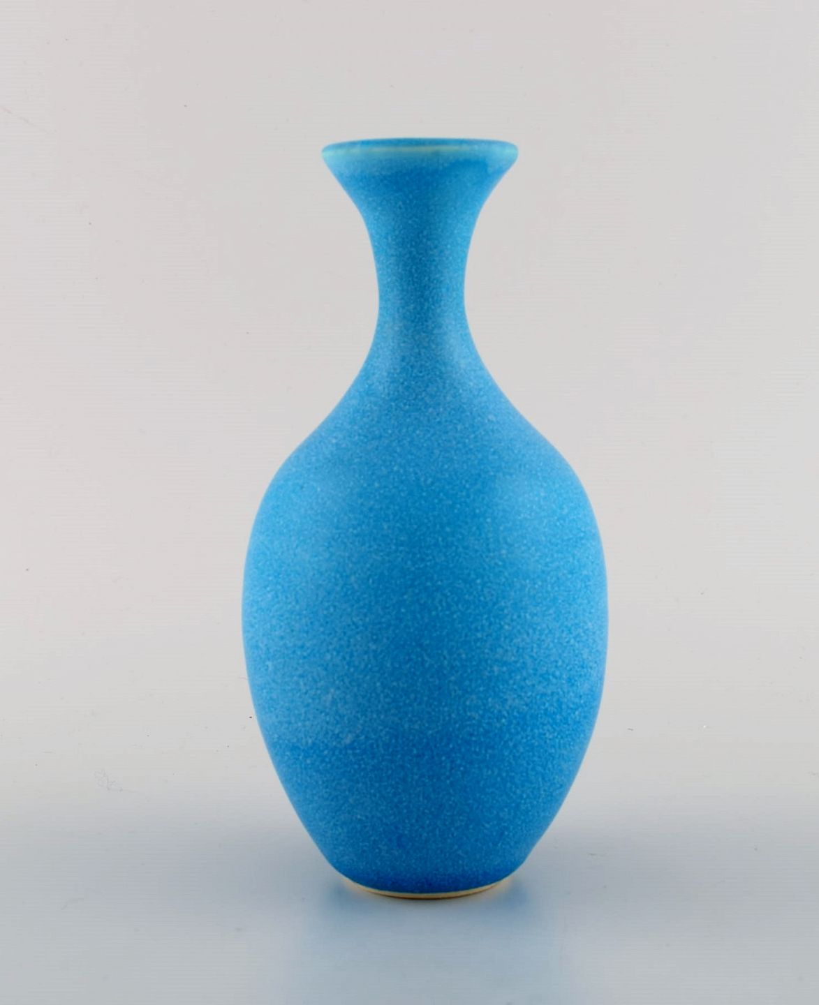 Gunnar Hartman (b. 1949), Sweden. Vase in glazed ceramics. Beautiful glaze in light blue shades. Late 20th century. Measures: 17.5 x 8.5 cm. Signed. In excellent condition.