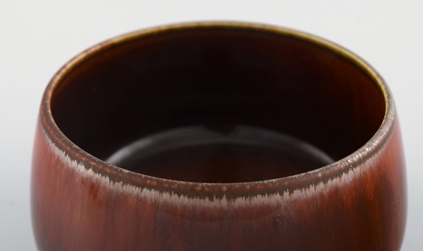 Carl Harry Stålhane for Rörstrand. Skål i glaseret keramik. Smuk glasur i rødbrune nuancer. Midt 1900-tallet.