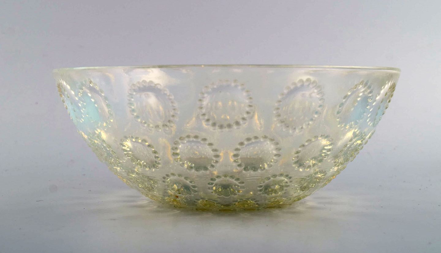 Tidlig René Lalique "Asters" skål i kunstglas. Dateret før 1945. Stemplet: R. Lalique. I flot stand. Måler: 20,5 x 7,8 cm.