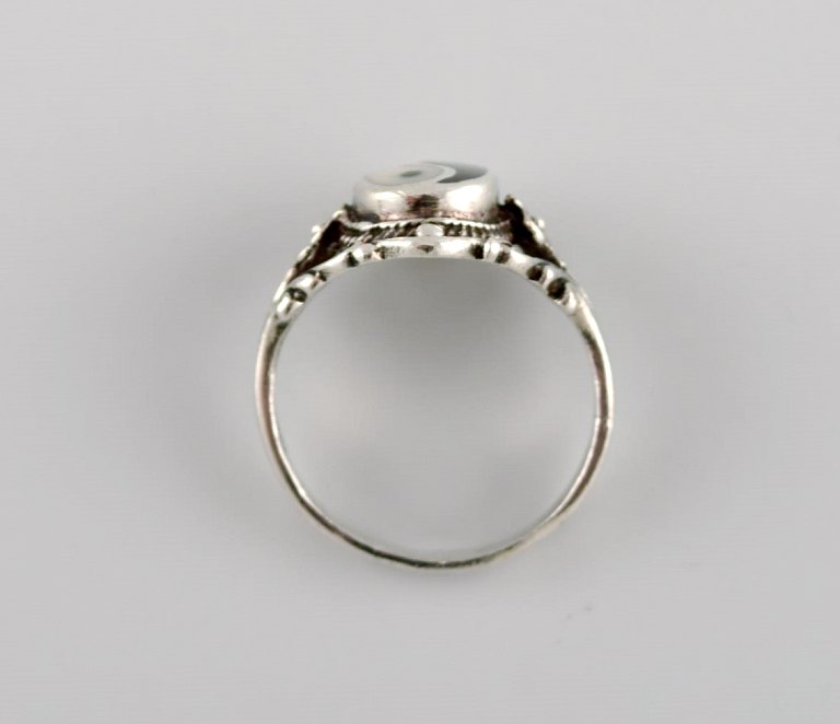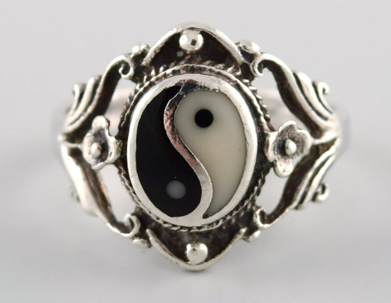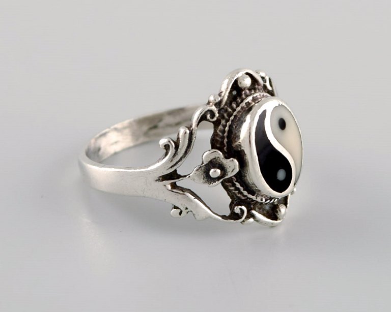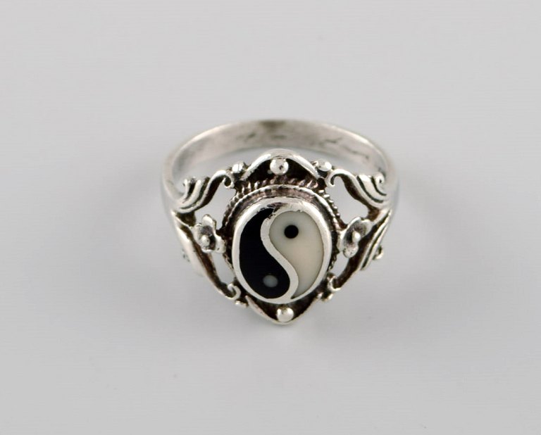 Svensk sølvsmed. Klassisk ring i sterlingsølv prydet med yin/yang. 1960/70'erne.
