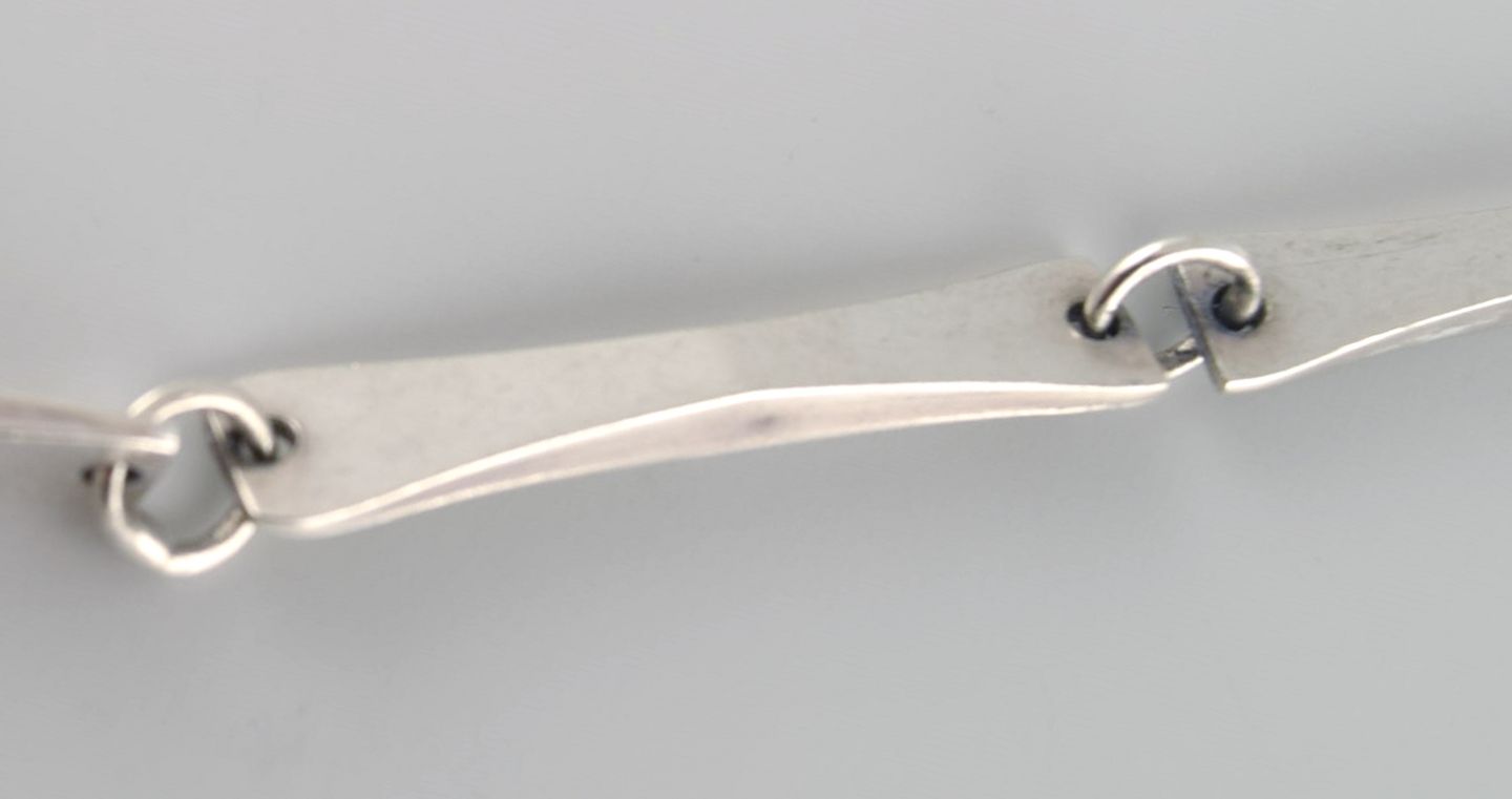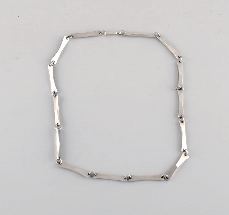 Gertrude Engel for Anton Michelsen. Modernistisk halskæde i sterlingsølv. Dateret 1961. Fuld længde: 47,5 cm. Bredde: 7 mm. Stemplet. I flot stand.