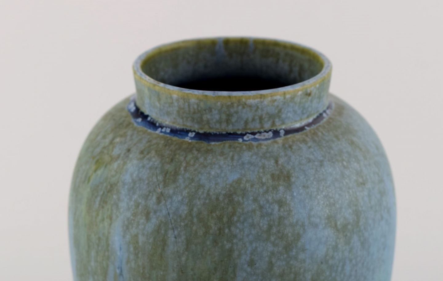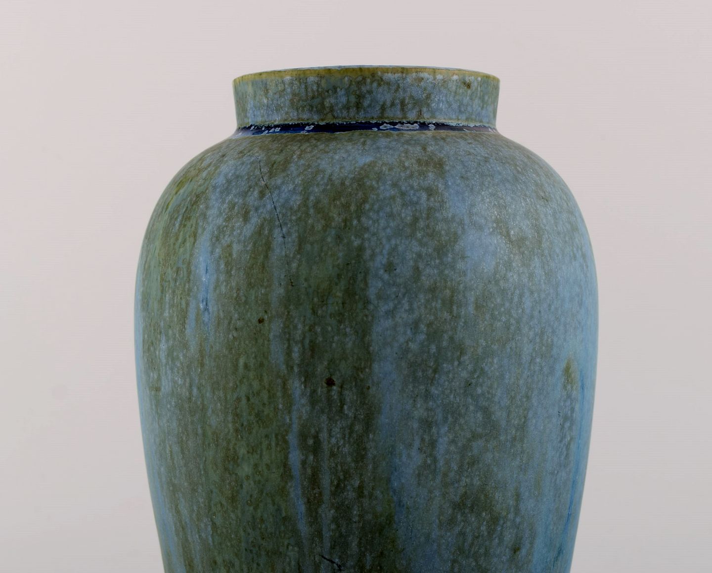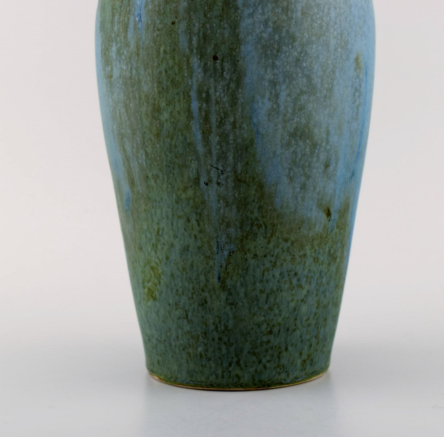 Denbac, Frankrig. Vase i glaseret keramik. Smuk glasur i blå nuancer. 1940'erne. Måler: 24,5 x 14 cm. I flot stand. Stemplet.