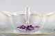 Antik Meissen sovsekande i håndmalet porcelæn med lilla blomster og guldkant. Ca. 1900. Måler: 24,5 x 10 cm. 1. sortering. I flot stand. Stemplet.