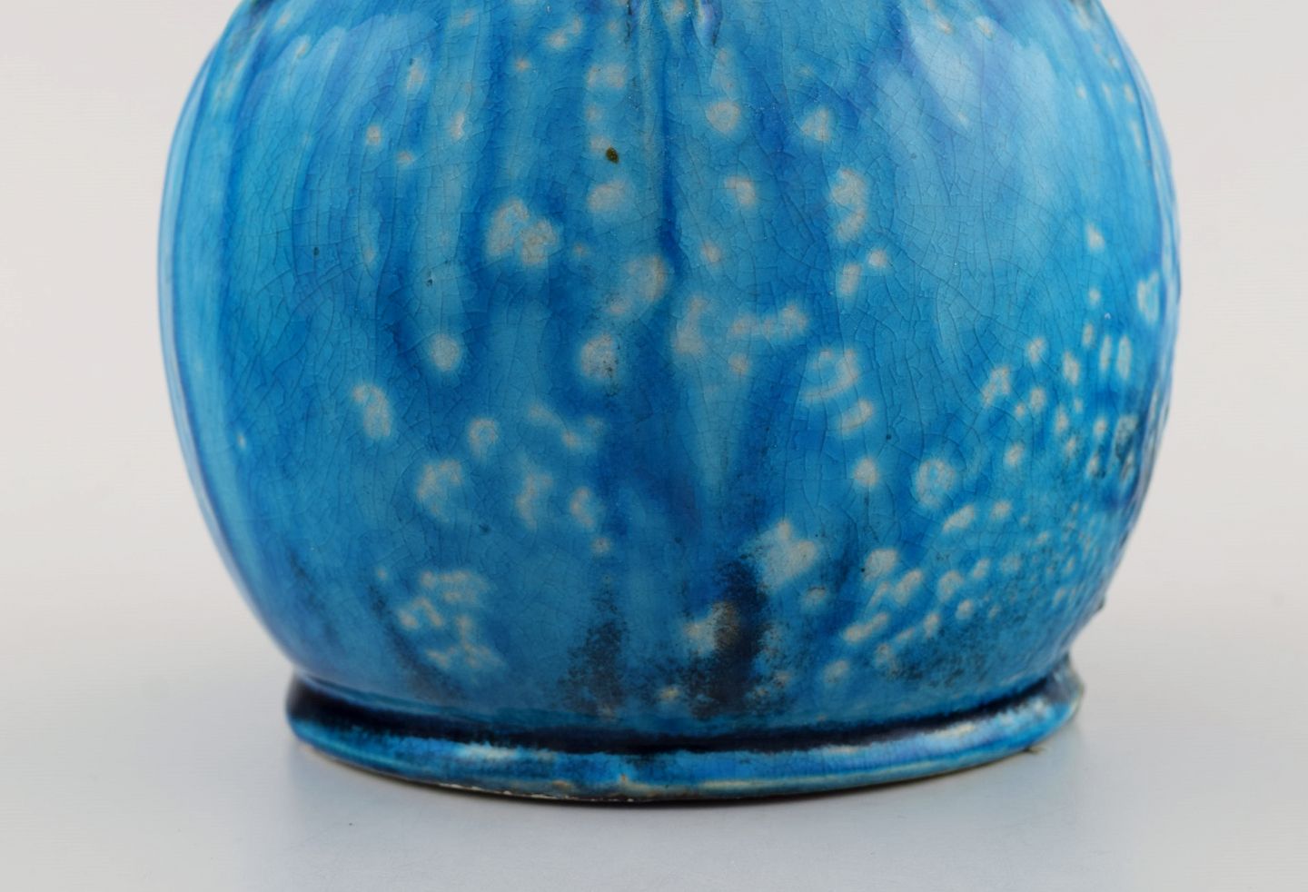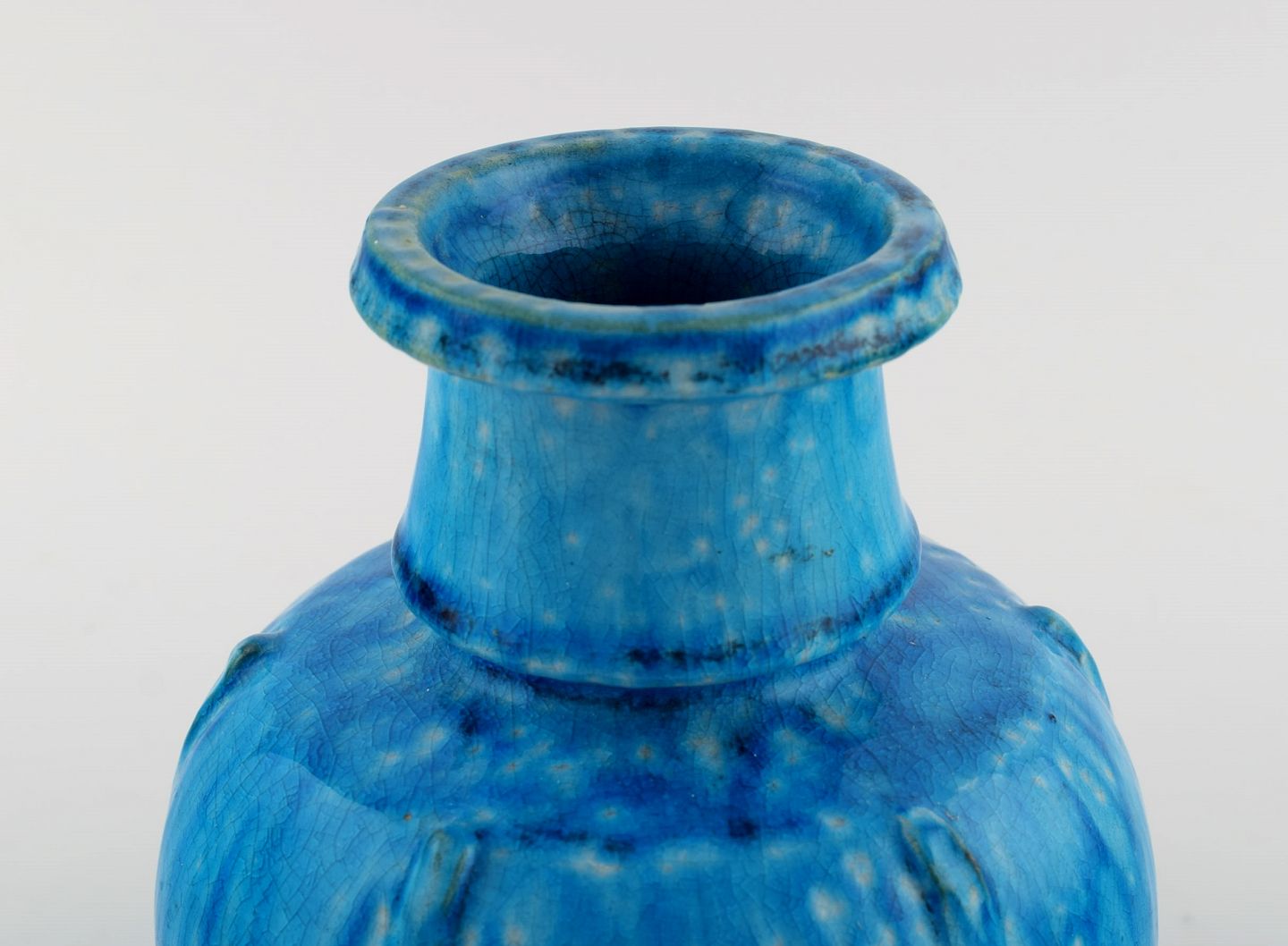 Svend Hammershøi for Kähler, HAK. Vase in glazed stoneware. Beautiful glaze in shades of blue. 1930s / 40s. Measures: 19.5 x 15.5 cm. Signed. In excellent condition with glaze error at the bottom.