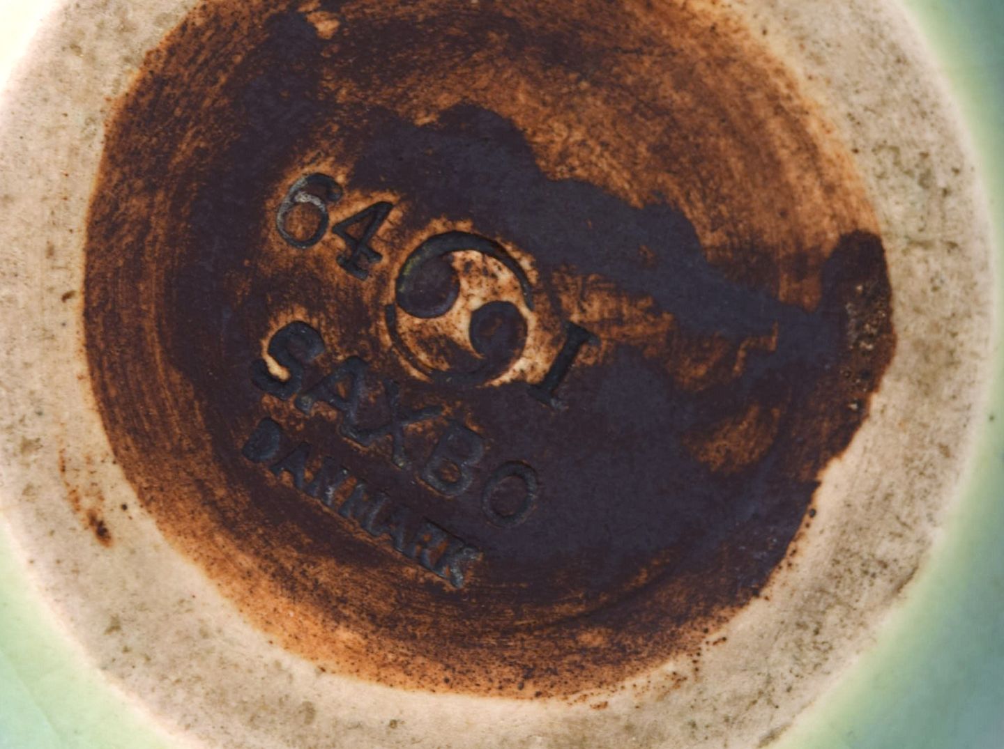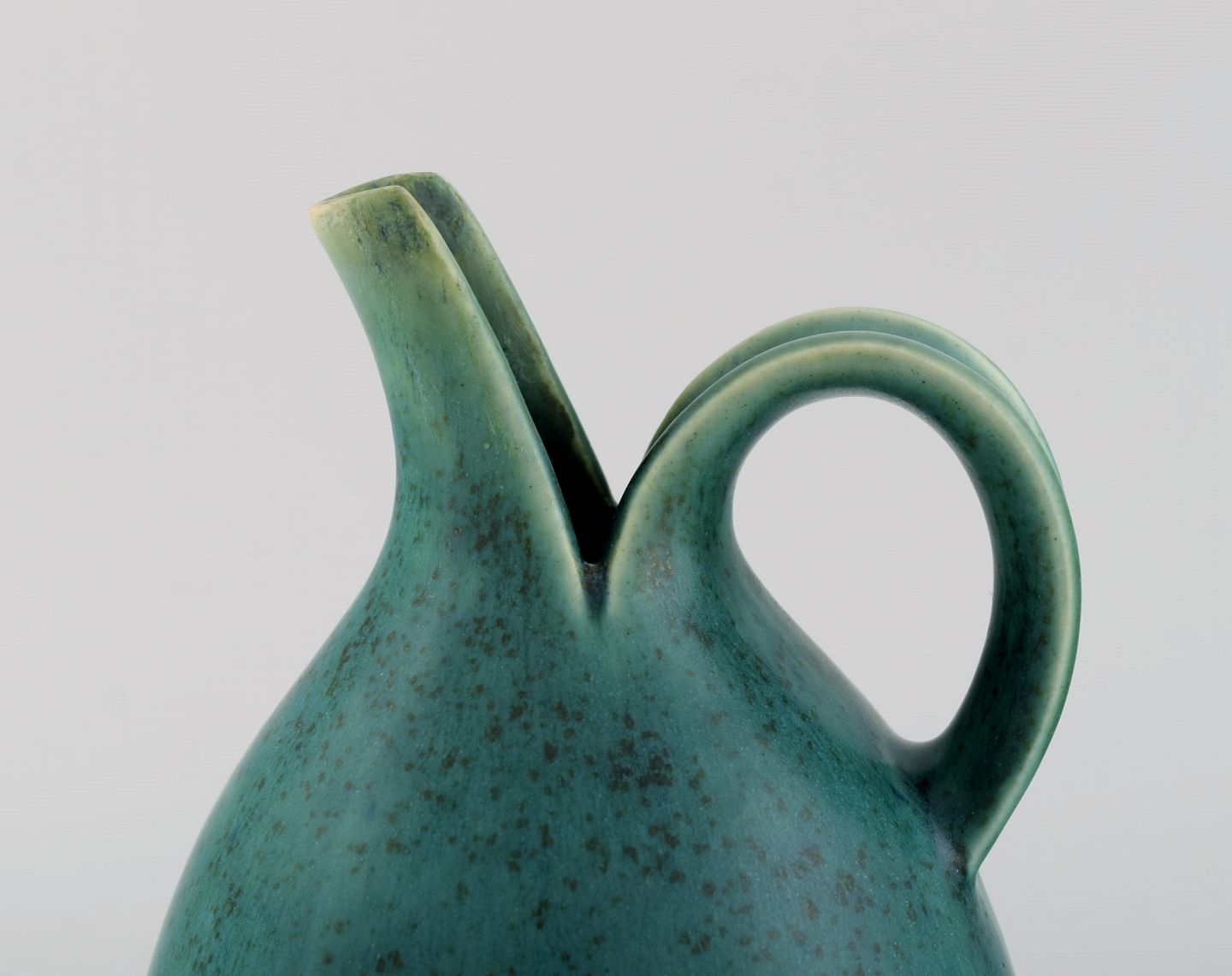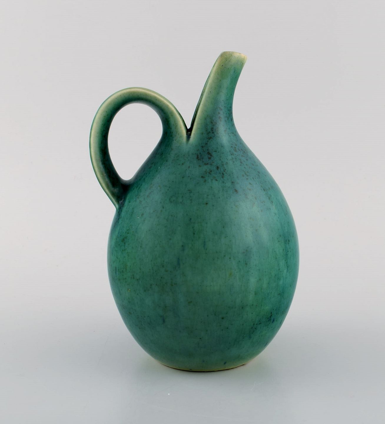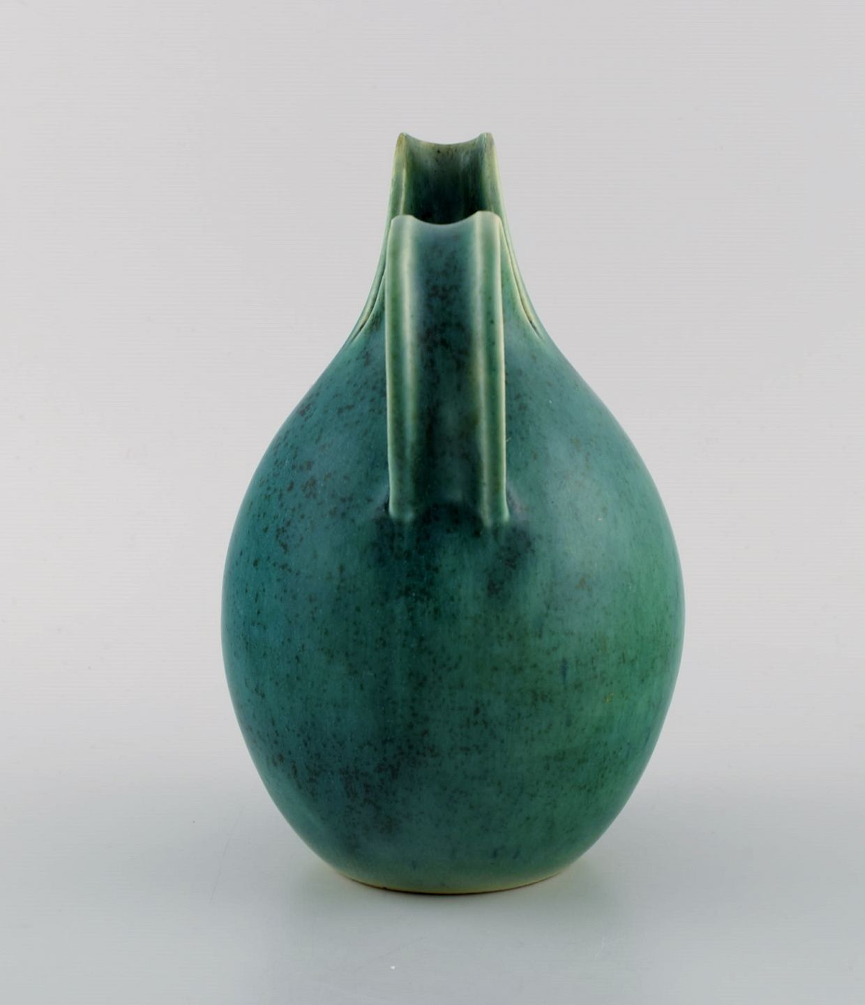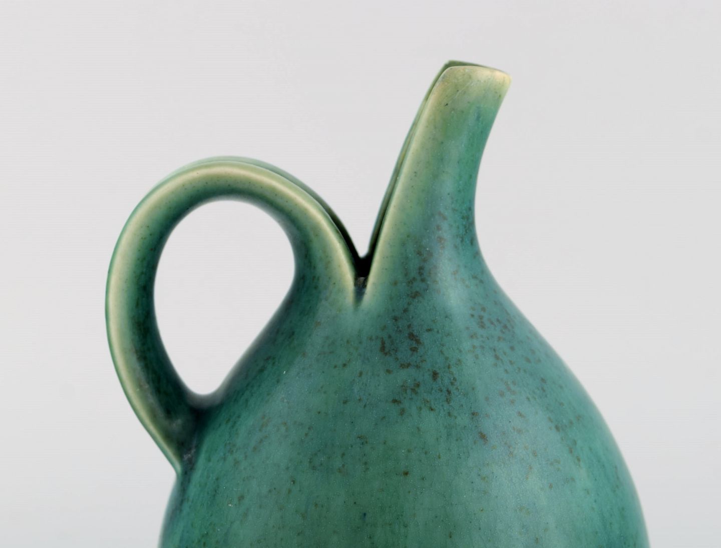 Eva Stæhr-Nielsen for Saxbo. Spaltekande i glaseret stentøj. Smuk glasur i grønne nuancer. 1940'erne.