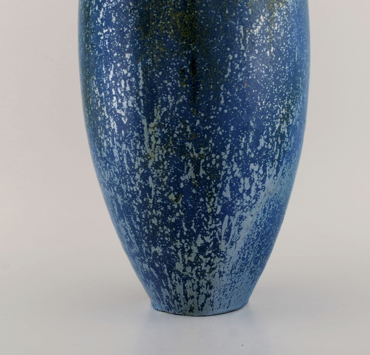 Europæisk studio keramiker. Stor vase i glaseret keramik. Smuk metallisk glasur i blå og grå nuancer. Dateret 1997.