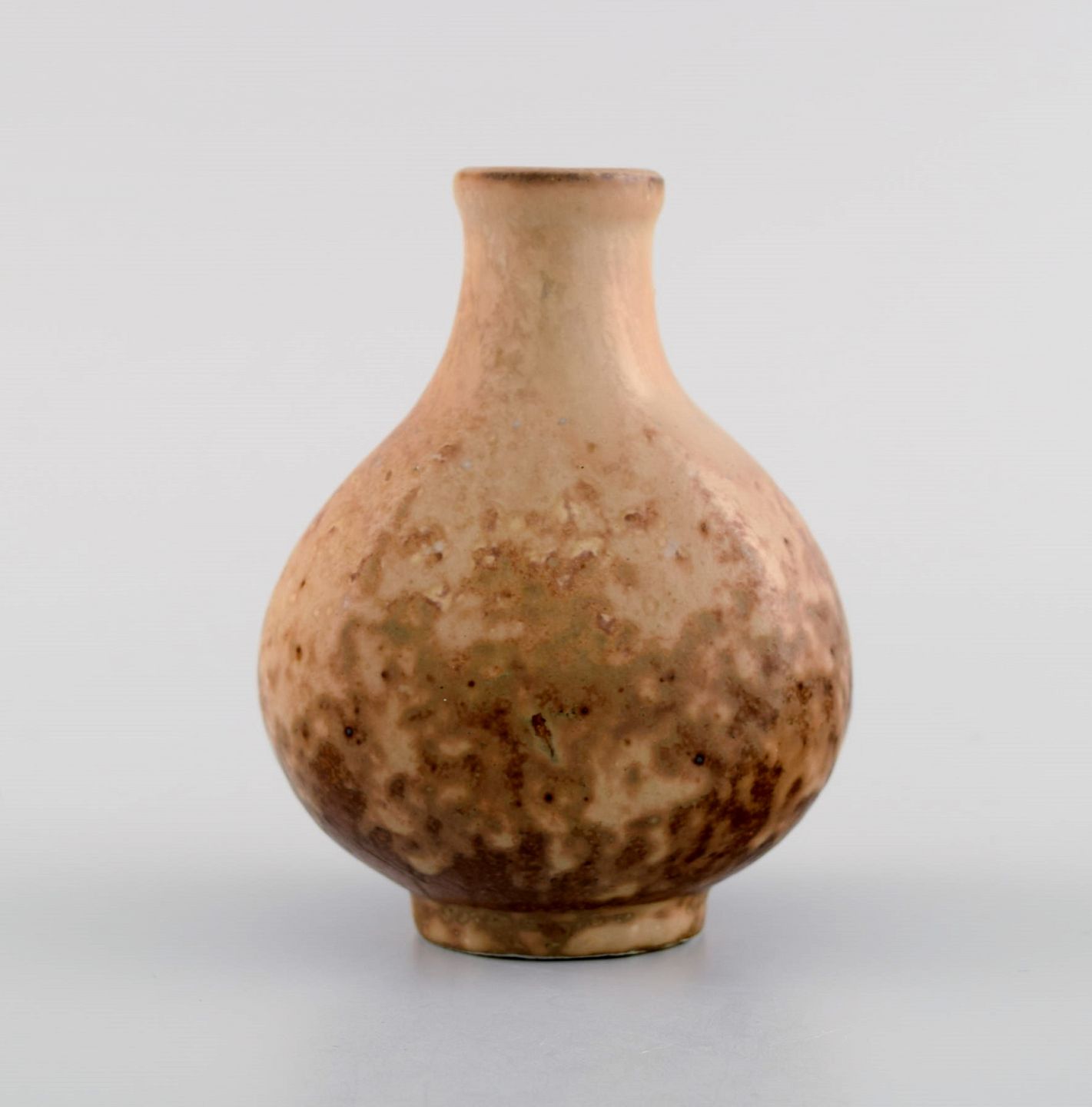 Bode Willumsen (1895-1987), Danmark. Unika vase i glaseret stentøj. Smuk glasur i lyse jordnauncer. Dateret 1937.
