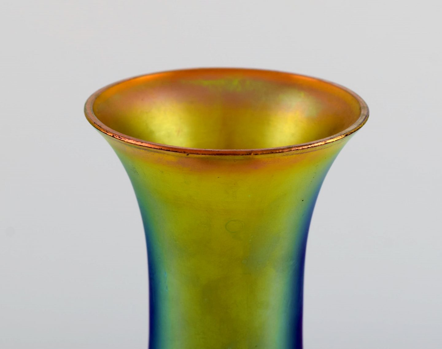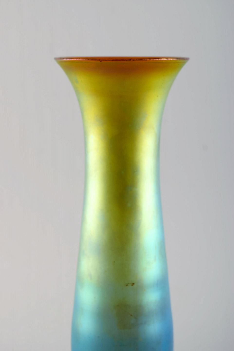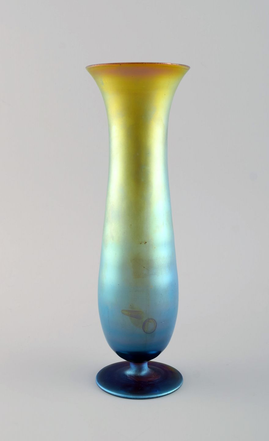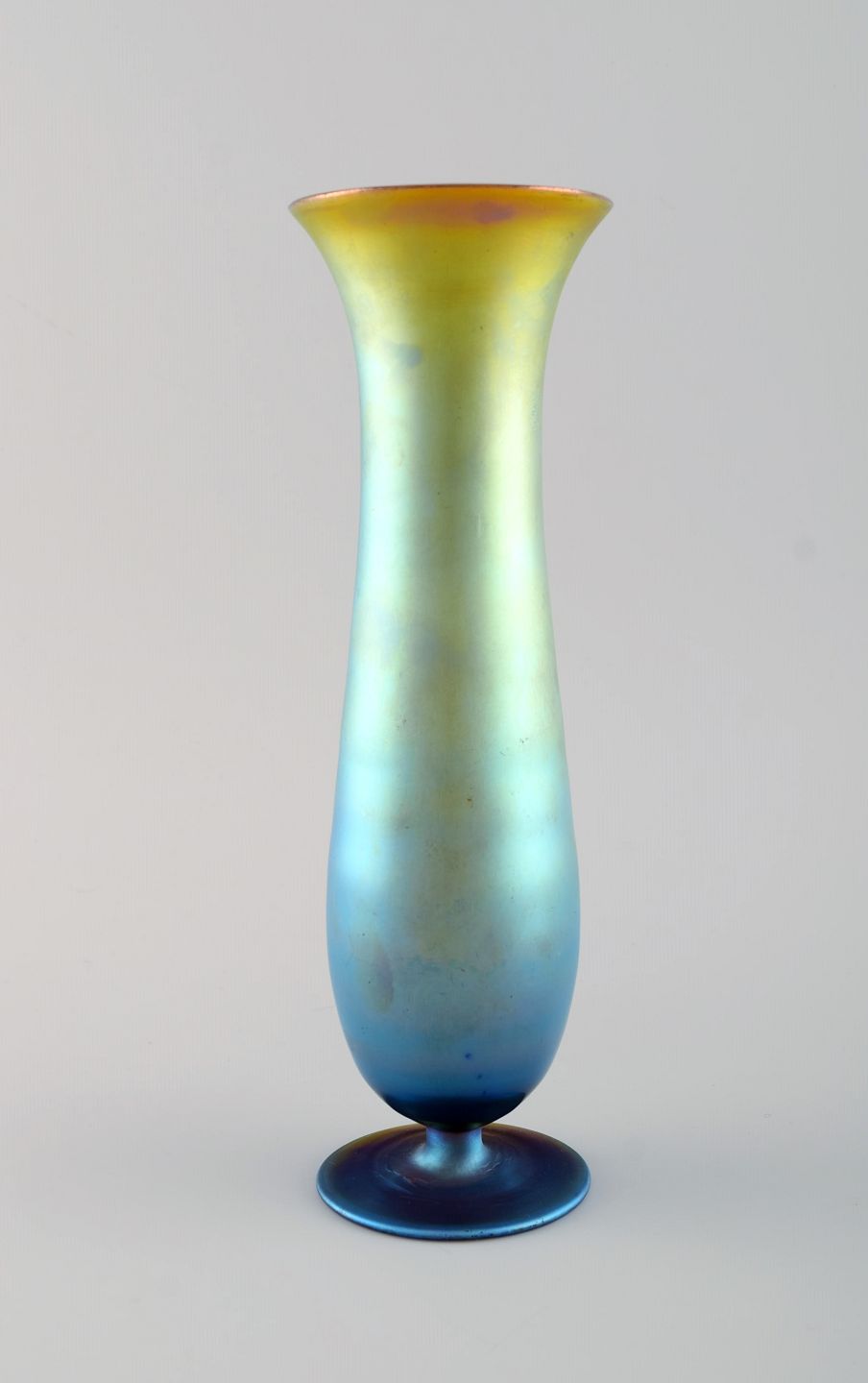 WMF, Tyskland. Vase i iriserende myra kunstglas. 1930'erne. Måler: 24,5 x 8 cm. I flot stand.