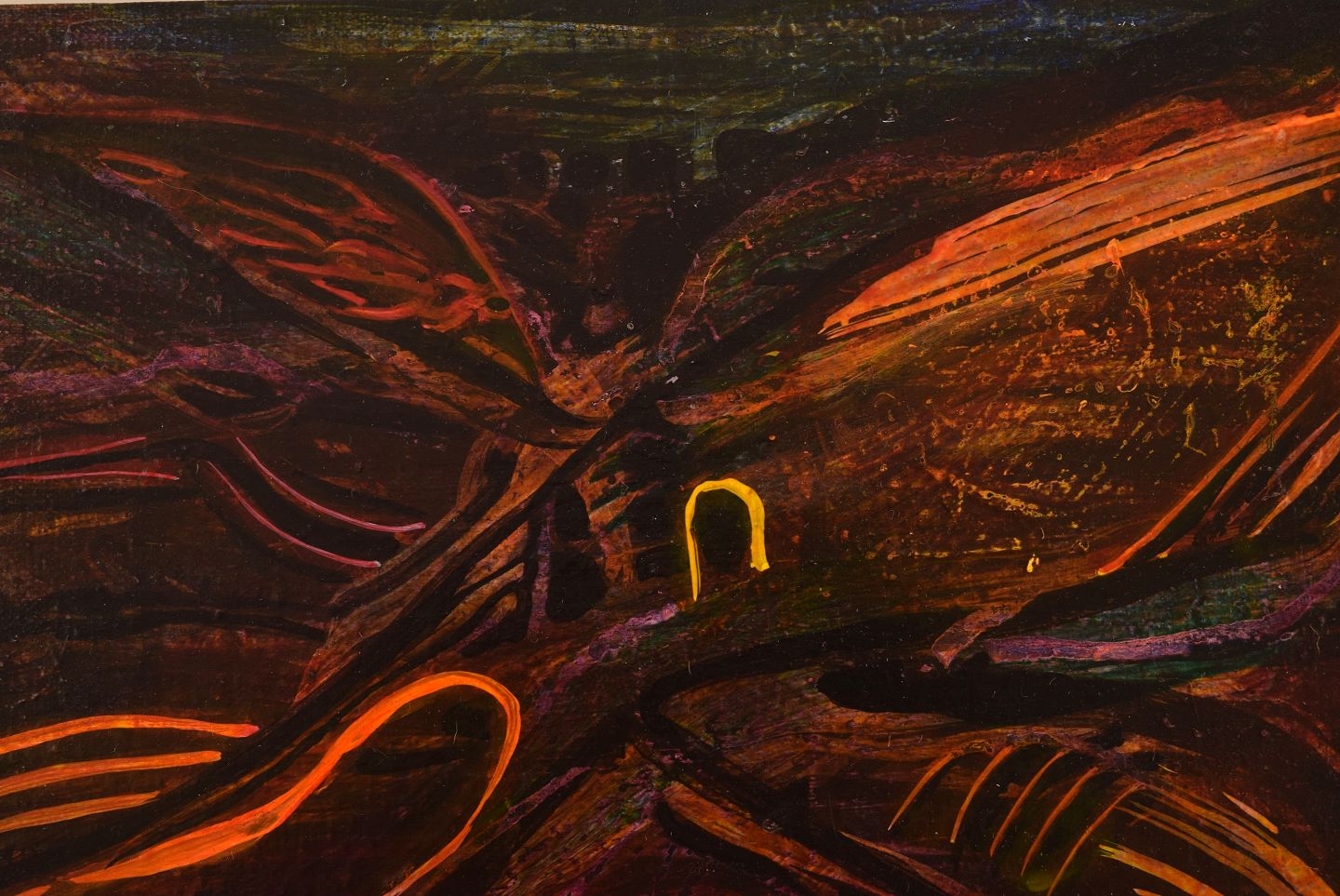 Ivy Lysdal, f 1937. Dansk keramiker og kunstmaler. Akryl på lærred. Abstrakt modernistisk maleri. Koloristisk palette. Sent 1900-tallet.