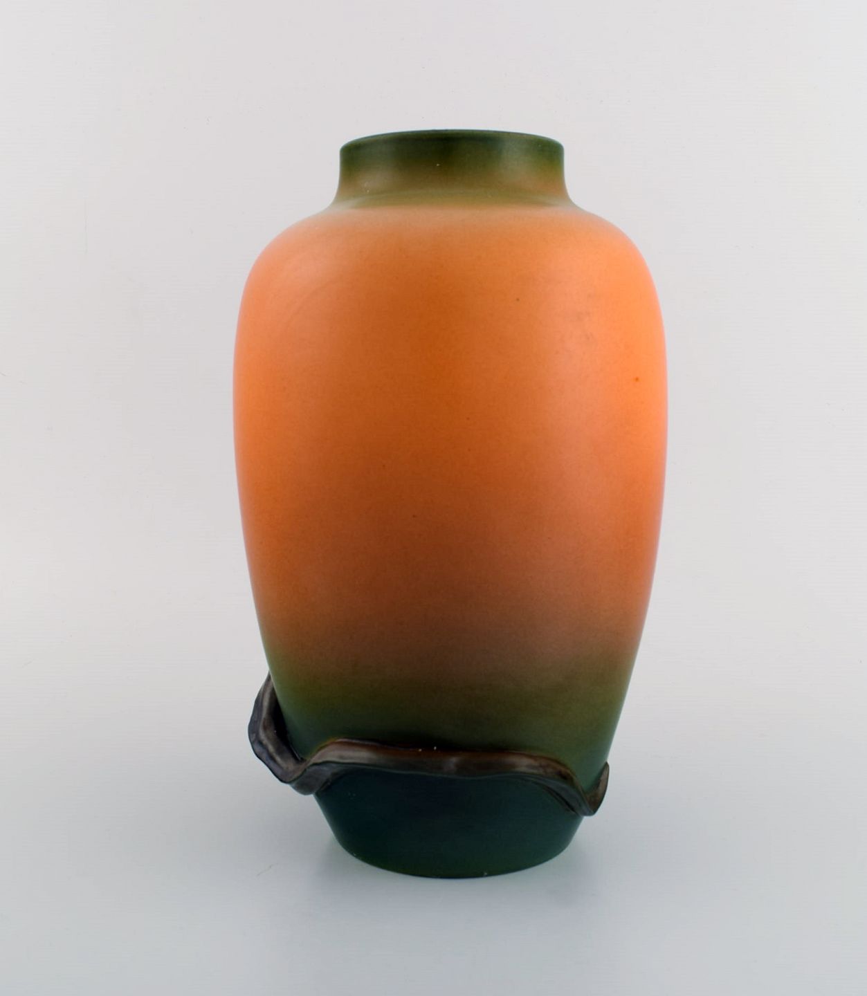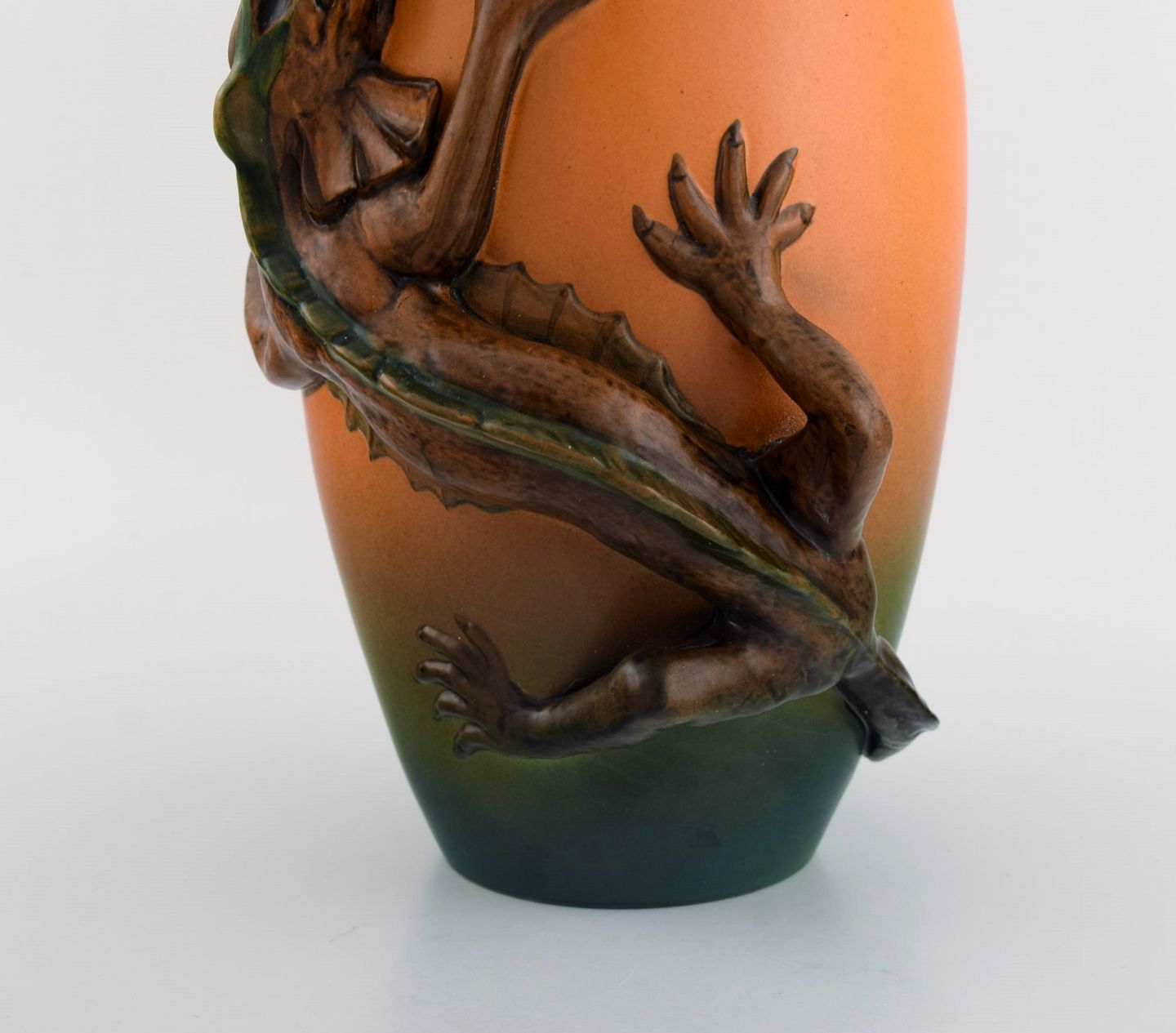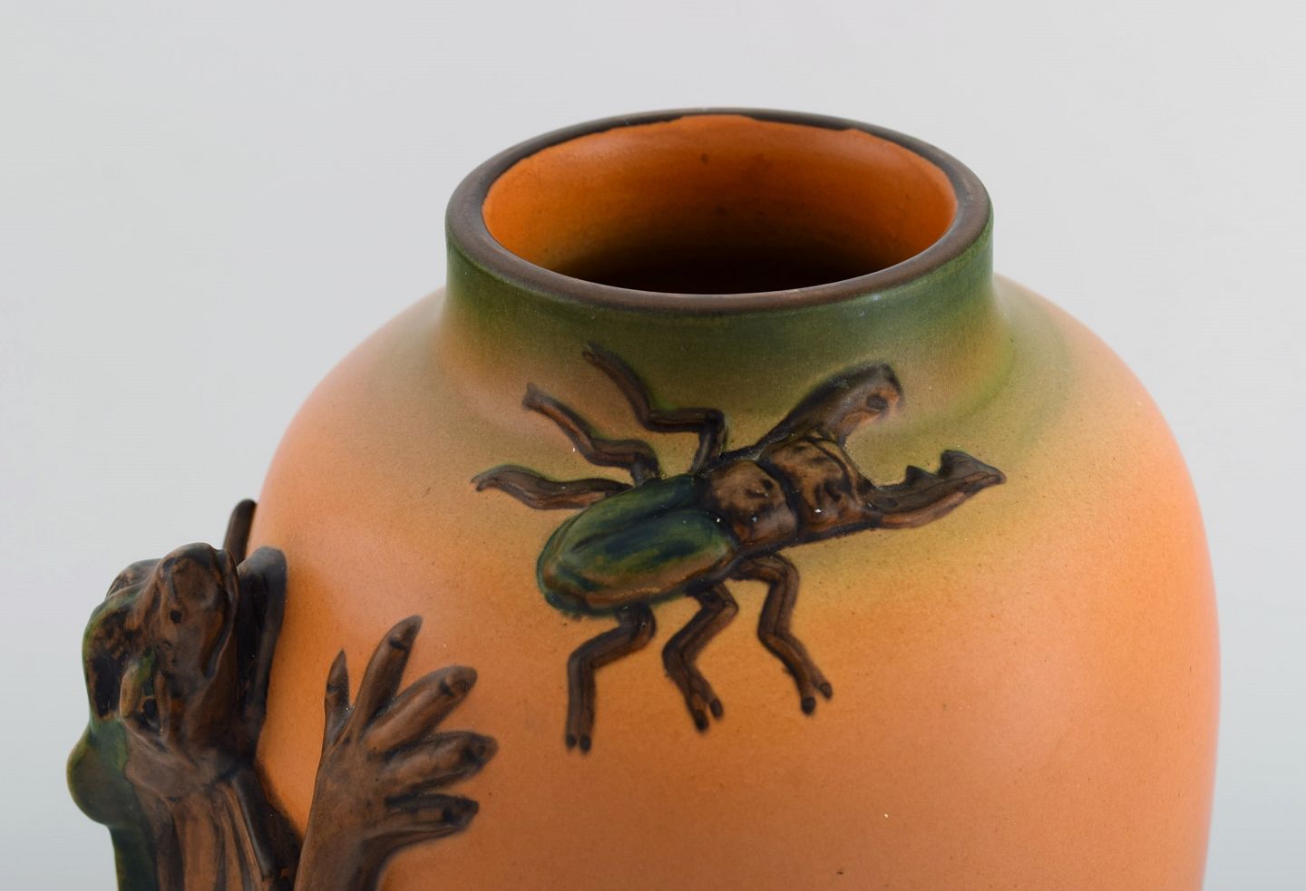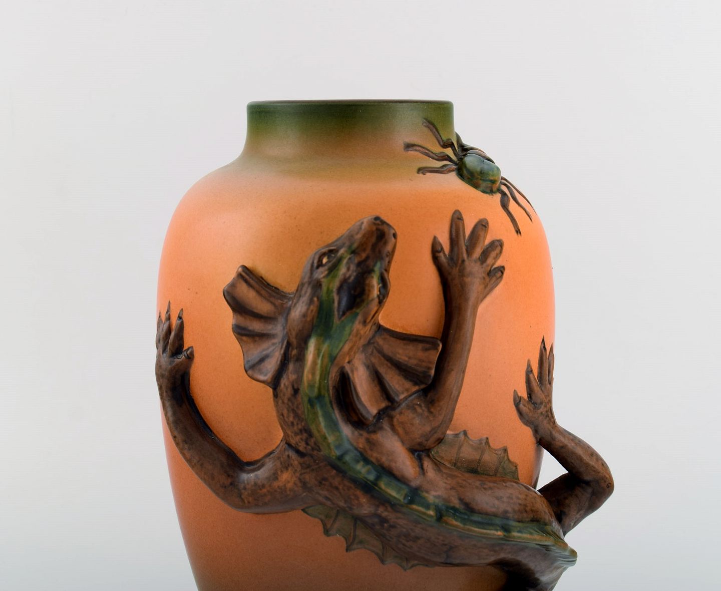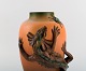 Ipsens enke, Danmark. Vase i håndmalet glaseret keramik med firben og bille. Modelnummer 364. Ca. 1920. Måler: 27,5 x 20 cm. I flot stand. Stemplet.