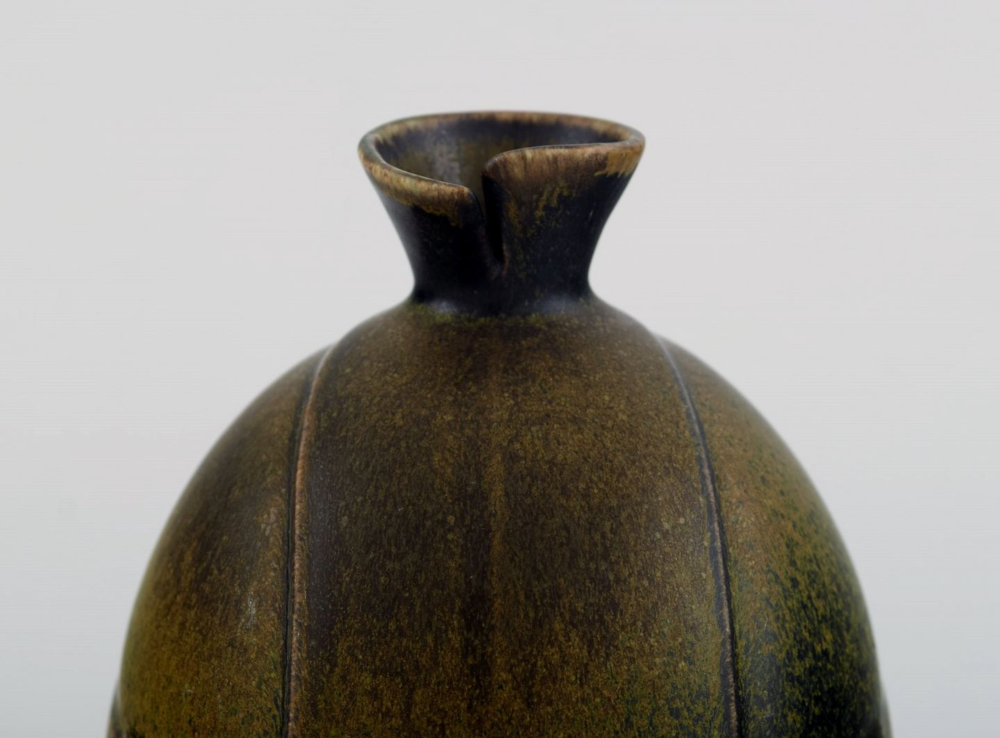 Gabi Citron-Tengborg for Gustavsberg. Vase i glaseret stentøj dekoreret med flot glasur i grønne nuancer. Midt 1900-tallet. Måler: 11,5 x 10 cm. Stemplet. I flot stand.