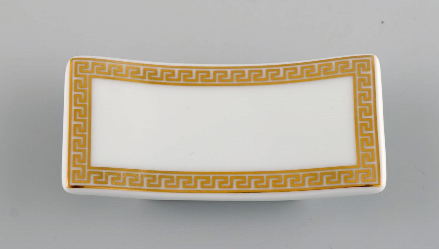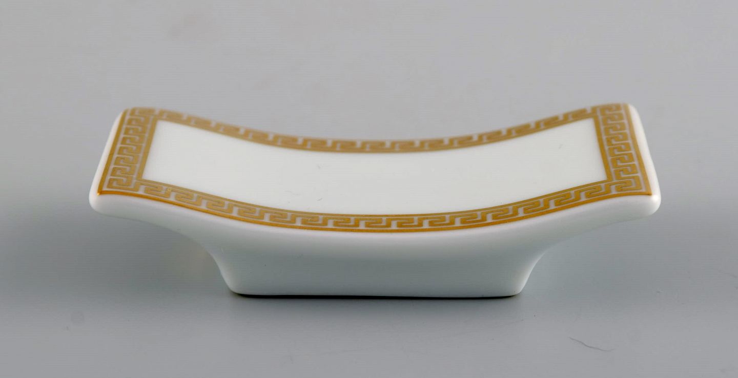 Gianni Versace for Rosenthal. Fem knivblokke i hvid porcelæn med guldornamentik. Sent 1900-tallet. Måler: 7,5 x 2 cm. I perfekt stand. Stemplet.