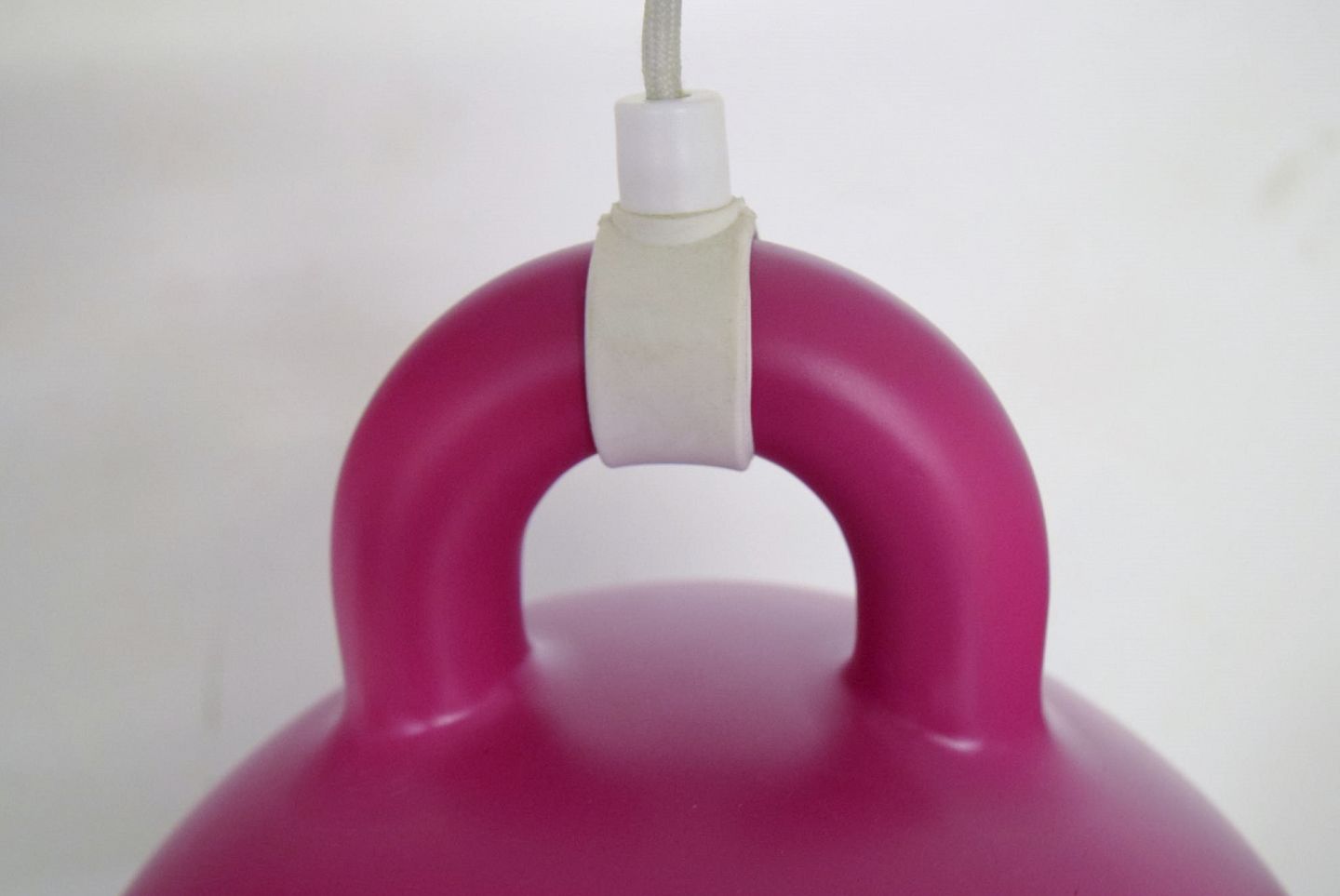 Andreas Lund og Jacob Rudbeck for Normann Copenhagen. Bell pendel i lilla/pink lakeret aluminium. Fremstillet i begrænset oplag i denne farve. 2000-tallet. Fem stk på lager.