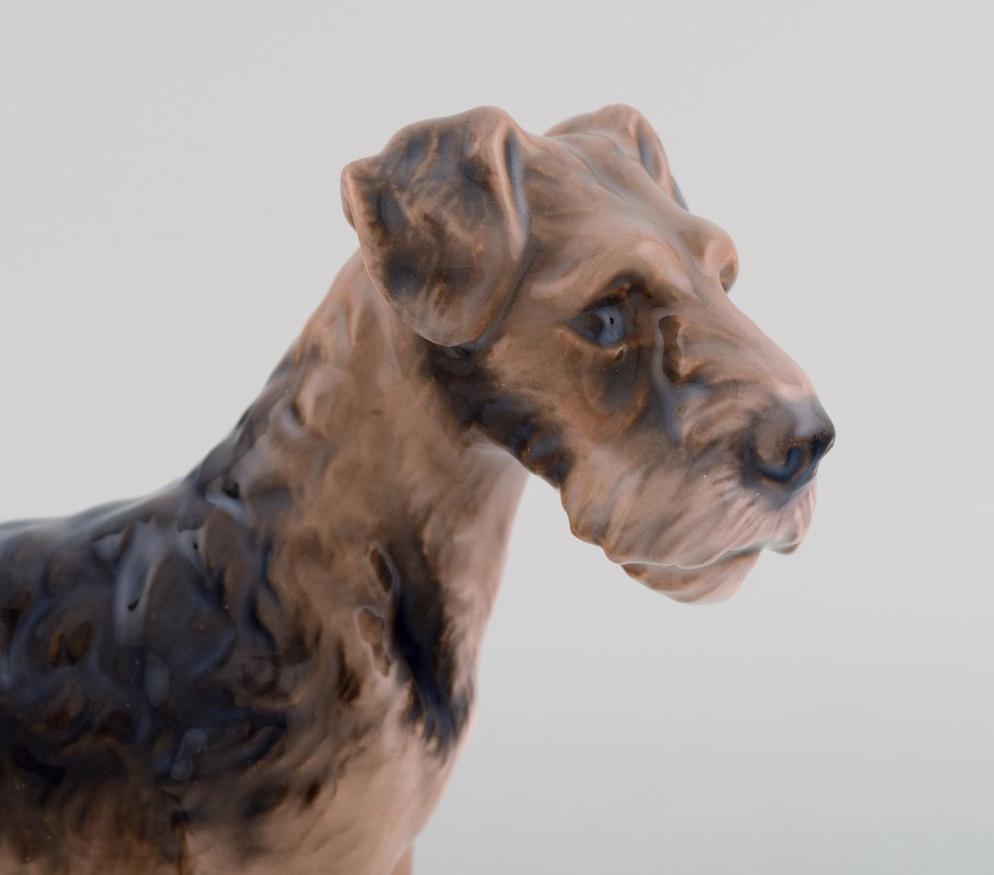 Dahl Jensen porcelain figure. Airedale Terrier. Model number 1079. 1940/30s. Measures: 21 x 16.5 cm. In excellent condition. Stamped. 1st factory quality.