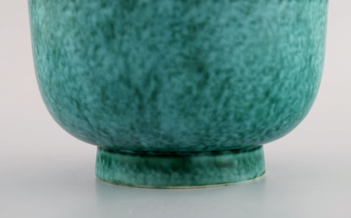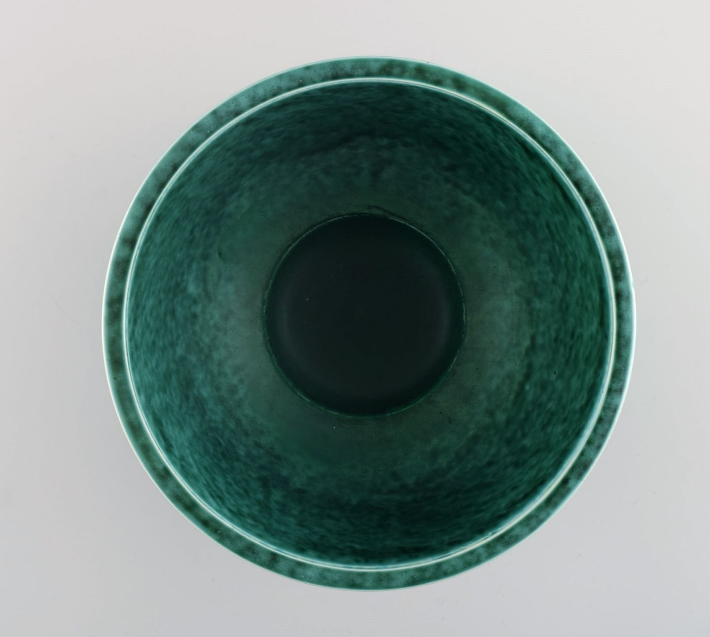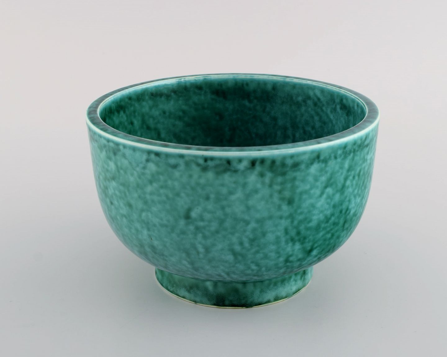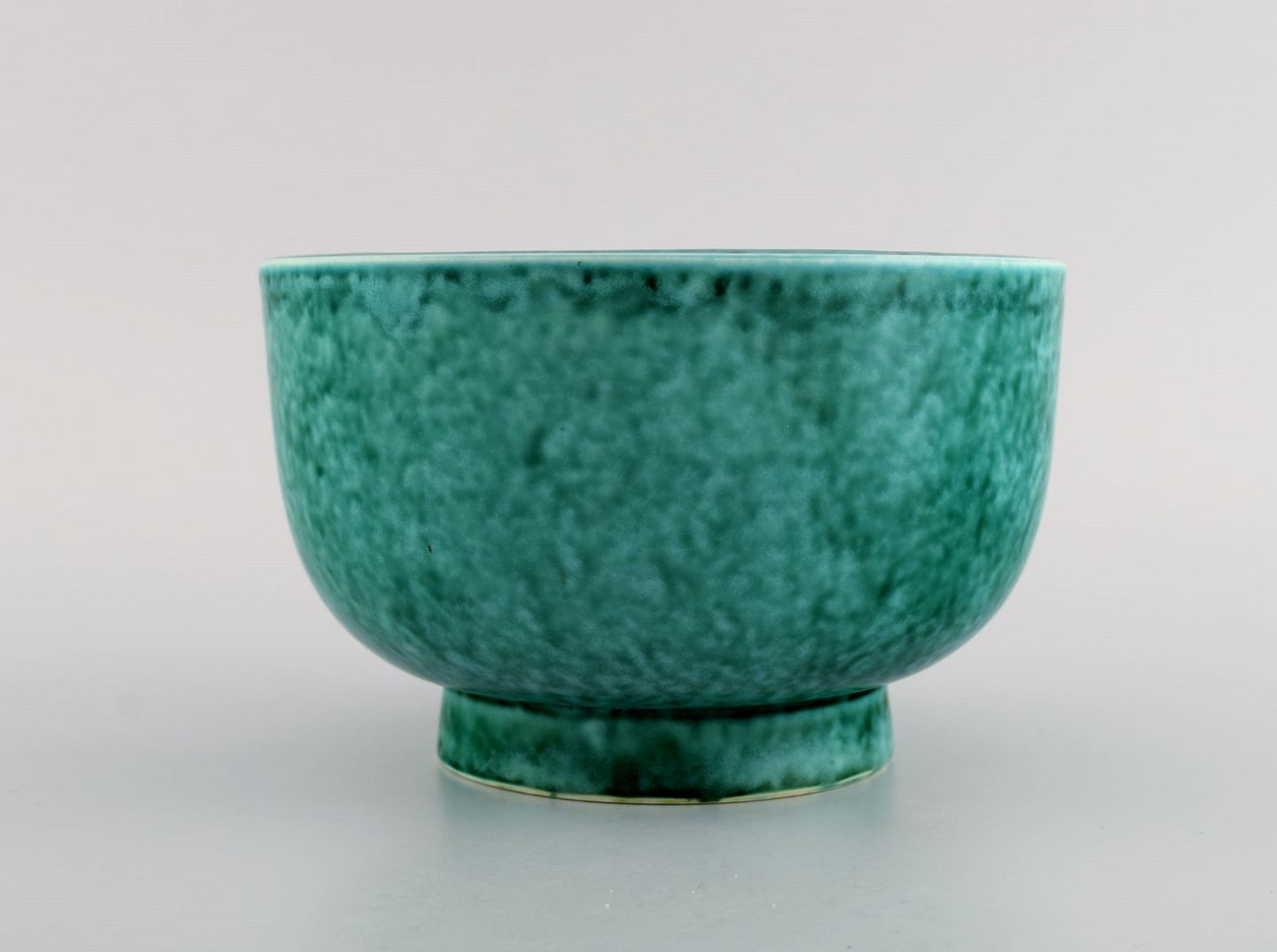Wilhelm Kåge for Gustavsberg. Argenta art deco bowl in glazed ceramics. Beautiful glaze in shades of green. 1940s. Measures: 17 x 10.5 cm. In excellent condition. Stamped.