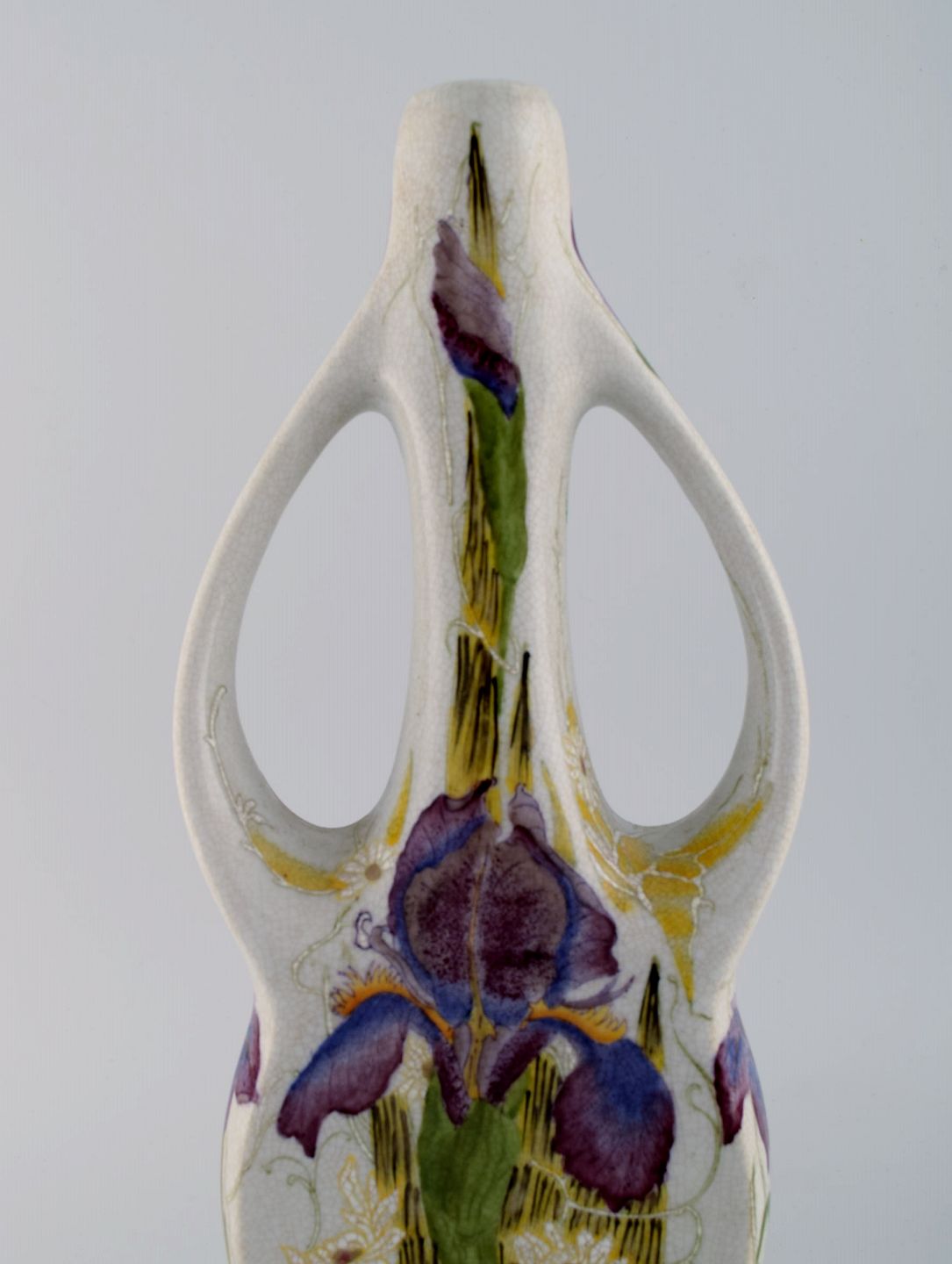 Colenbrander, Holland. To art nouveau vaser i håndmalet krakeleret keramik. Dekoreret med blomster og bladværk. 1930'erne. Måler: 38 x 15 cm. I flot stand. Signeret.