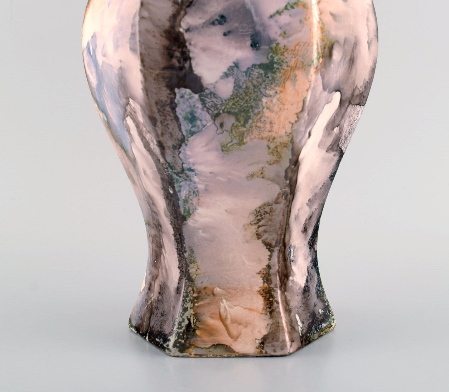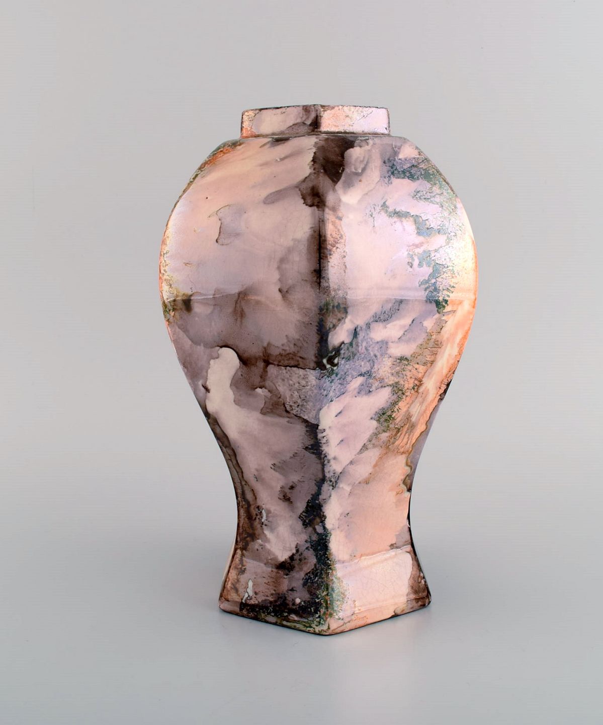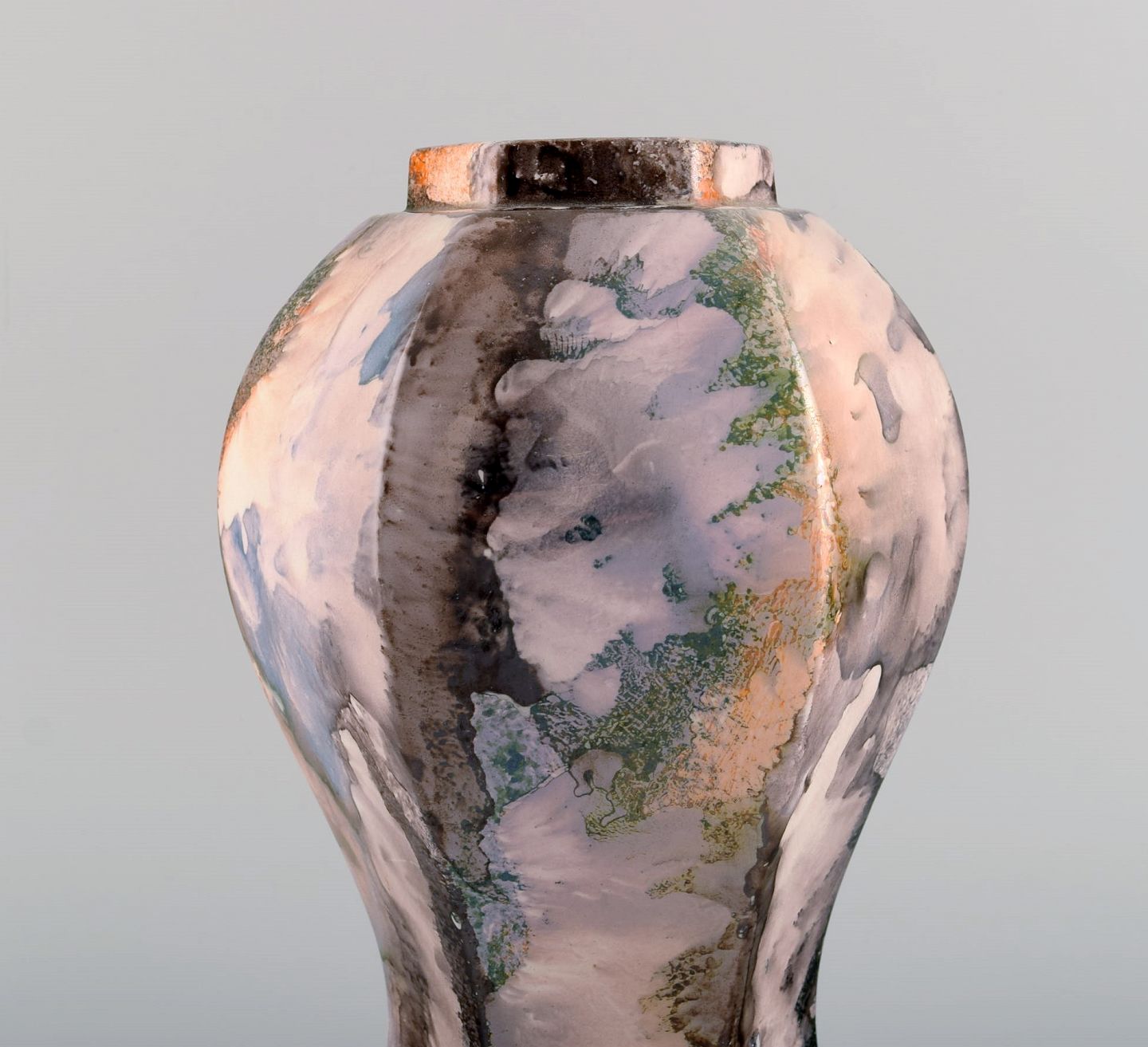 Tidlig Rörstrand art deco vase i glaseret keramik. Smuk glasur med flerfarvet marmor effekt. 1920'erne. Måler: 25,5 x 17,5 cm. Stemplet. I flot stand.