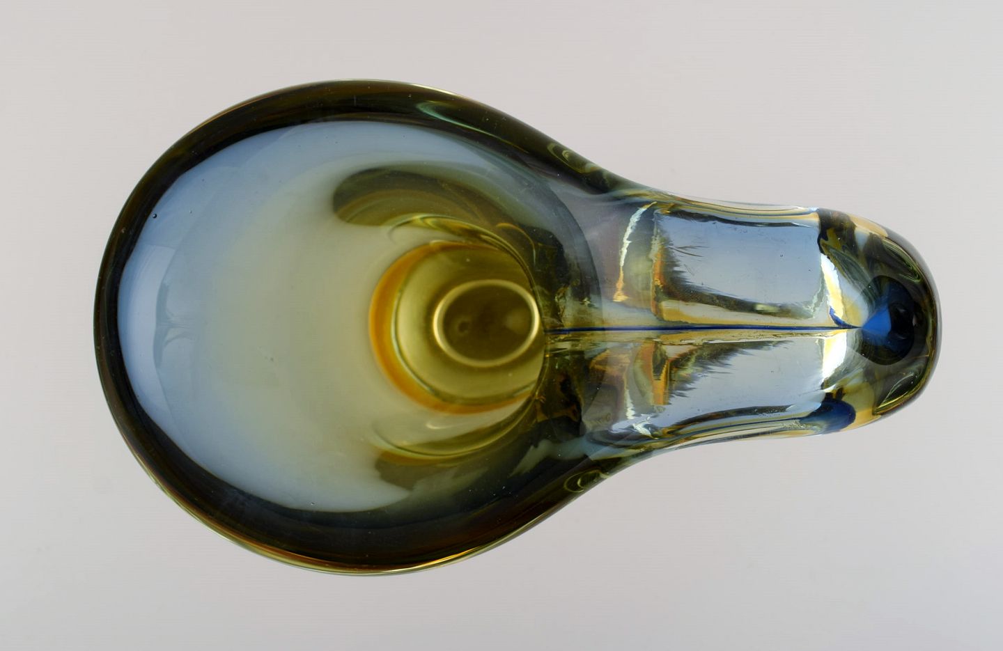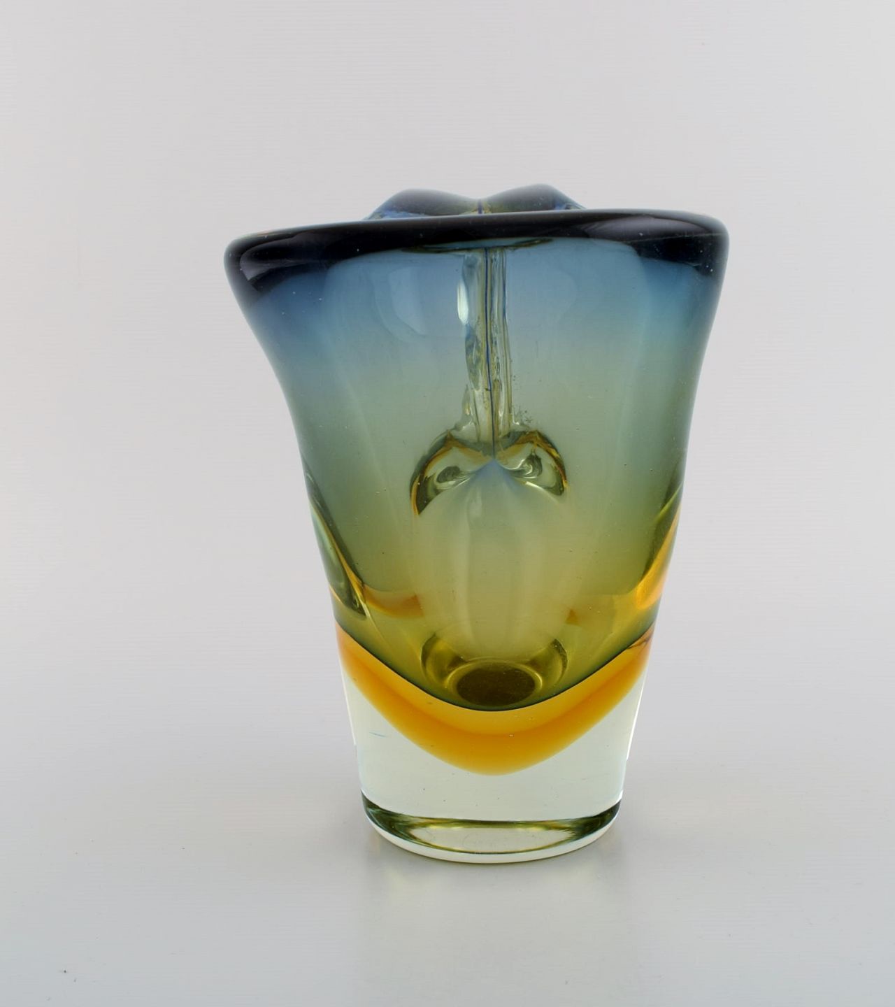 Stor skulpturel Murano vase / kande i mundblæst kunstglas. Blå og gule nuancer. Italiensk design, 1960/70'erne.