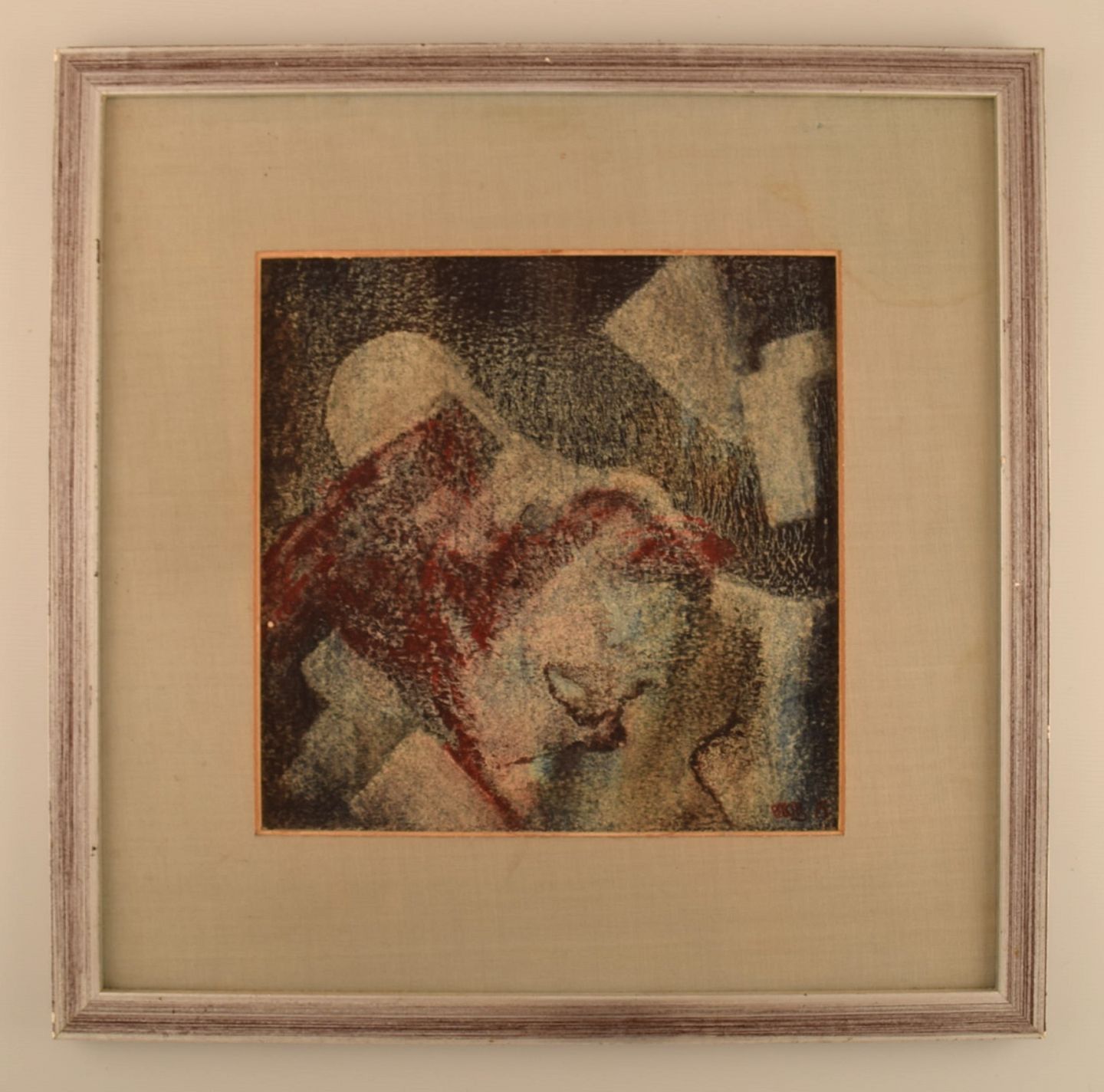 Skandinavisk kunstner. Oliekridt på papir. "Extra Celeste". Abstrakt komposition. Dateret 1975.