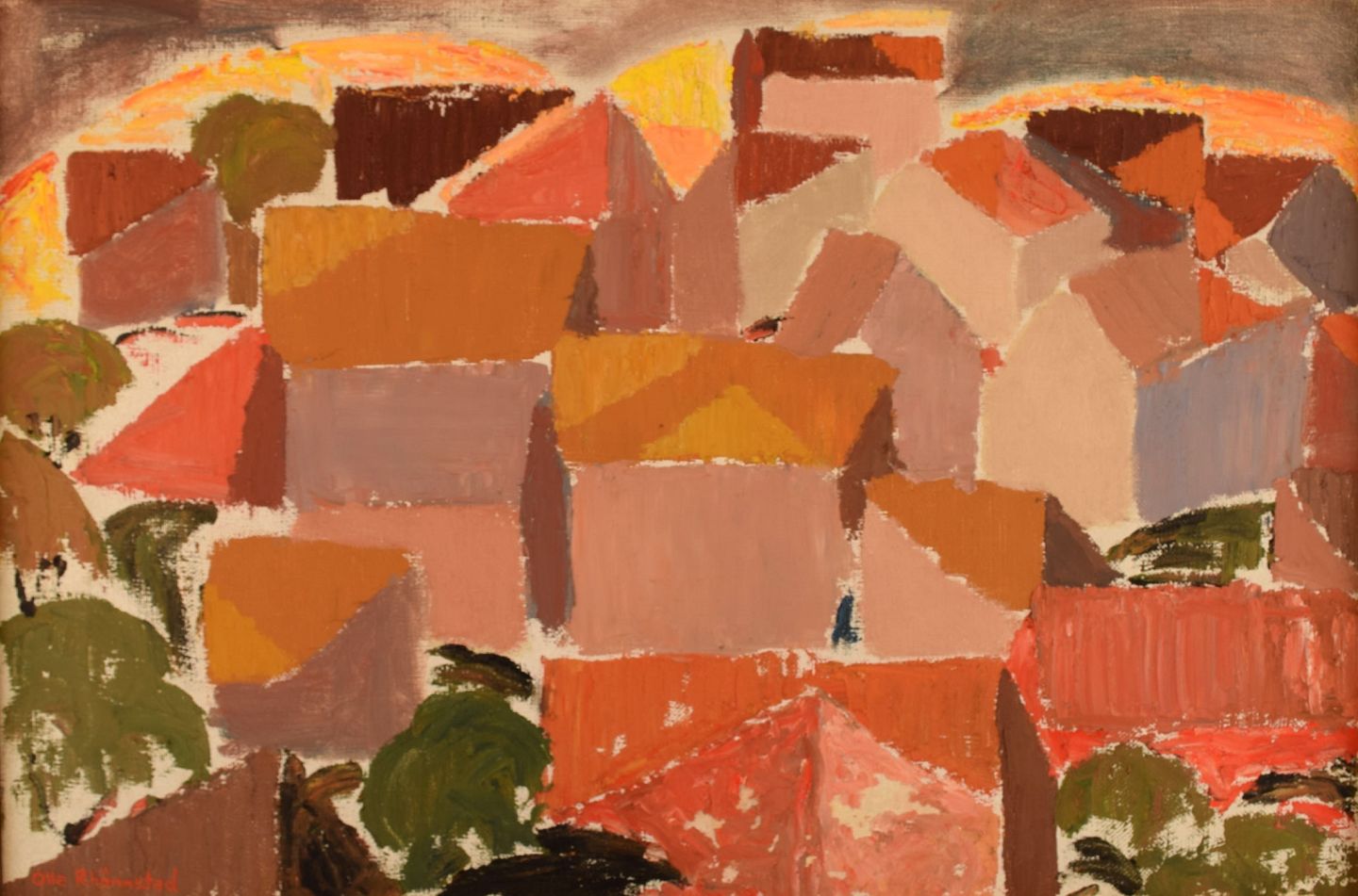 Olle Rhönnstad (1931-1988), Sverige. Olie på lærred. Modernistisk bymotiv. 1960'erne.