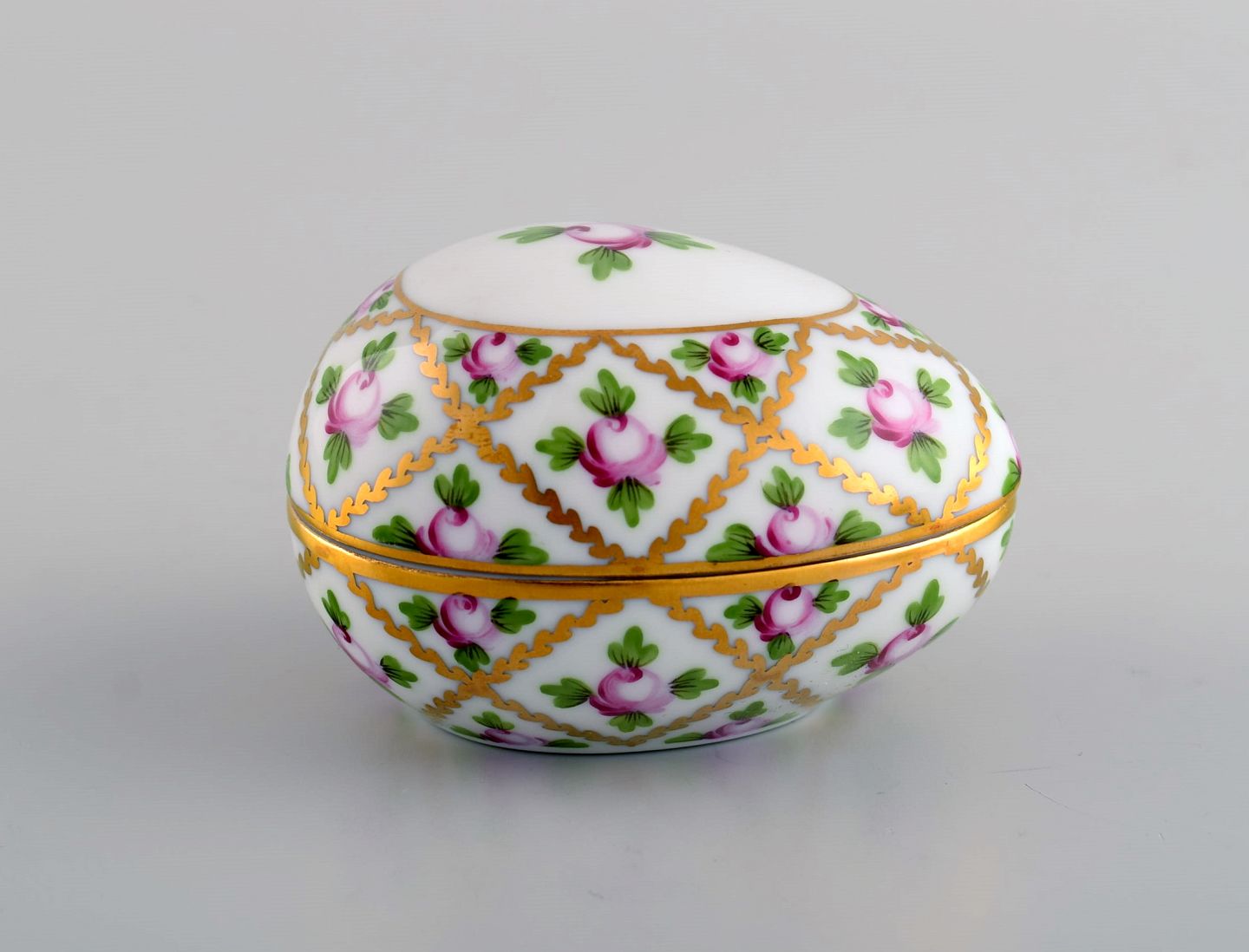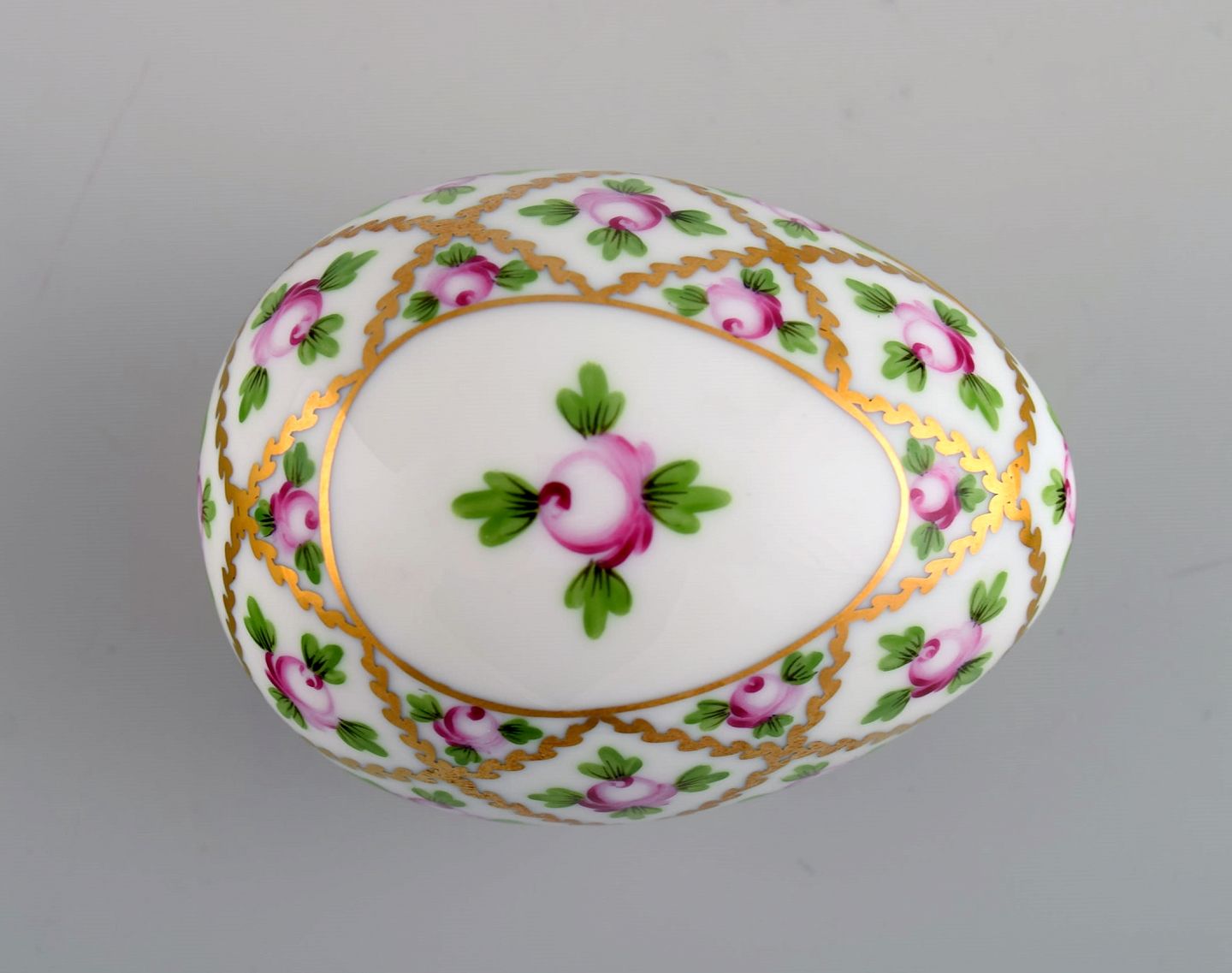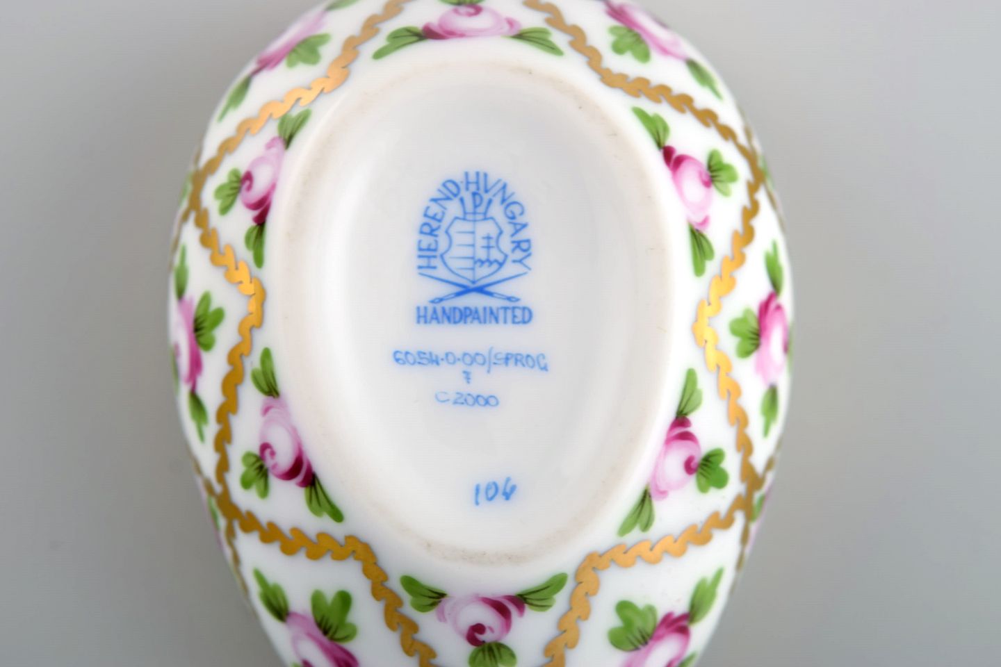 Fire Herend æg i håndmalet porcelæn. 1980'erne. Måler: 7,5 x 5 cm. I flot stand. Stemplet.