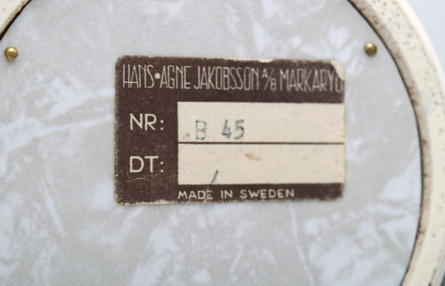 HANS-AGNE JAKOBSSON for A/B MARKARYD. Retro bordlampe i træ med dekoration i polykrome pastelfarver. 1960'erne.