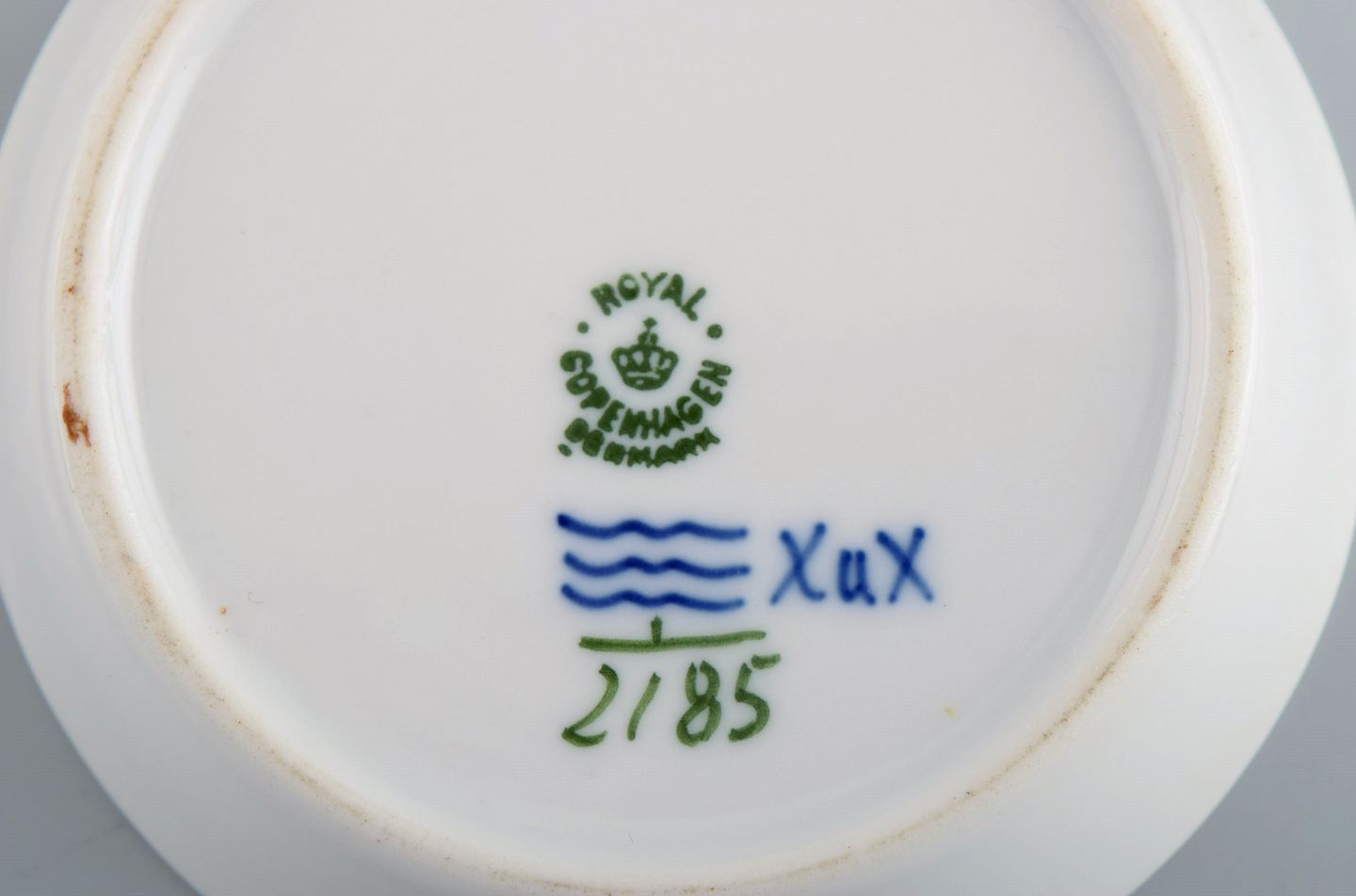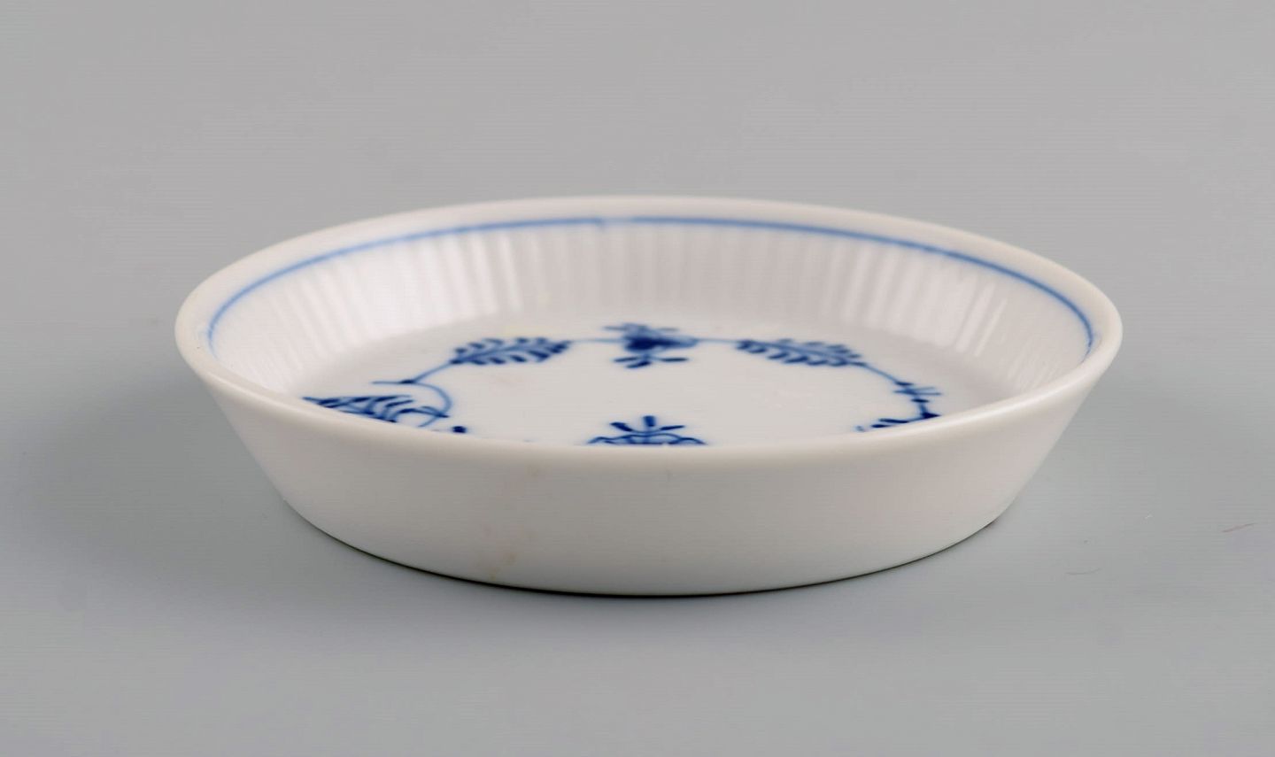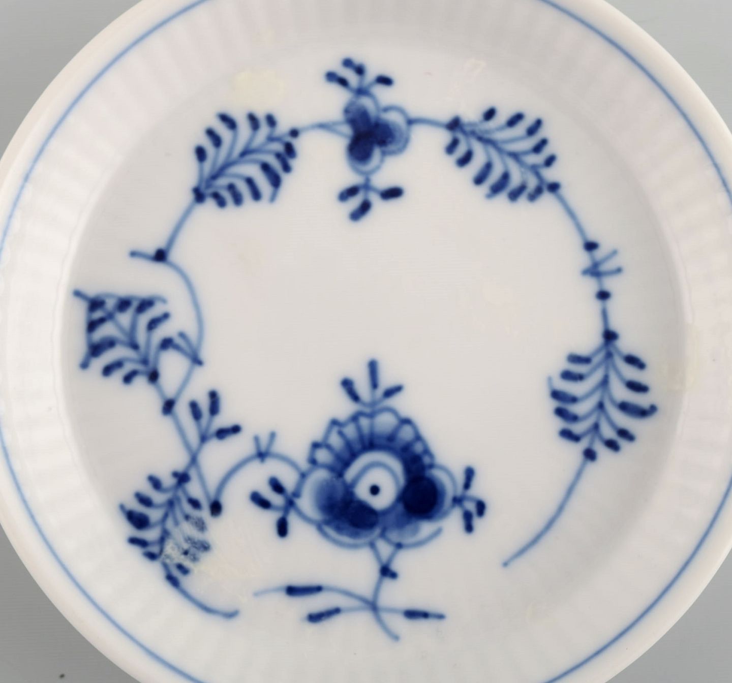 Royal Copenhagen Musselmalet riflet flaskebakke. Modelnummer 1/2185. Dateret 1955.