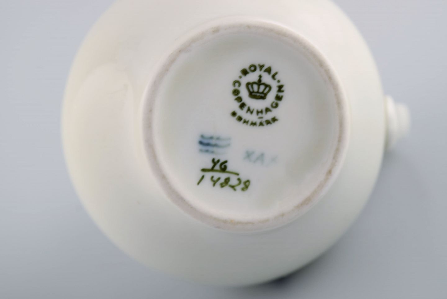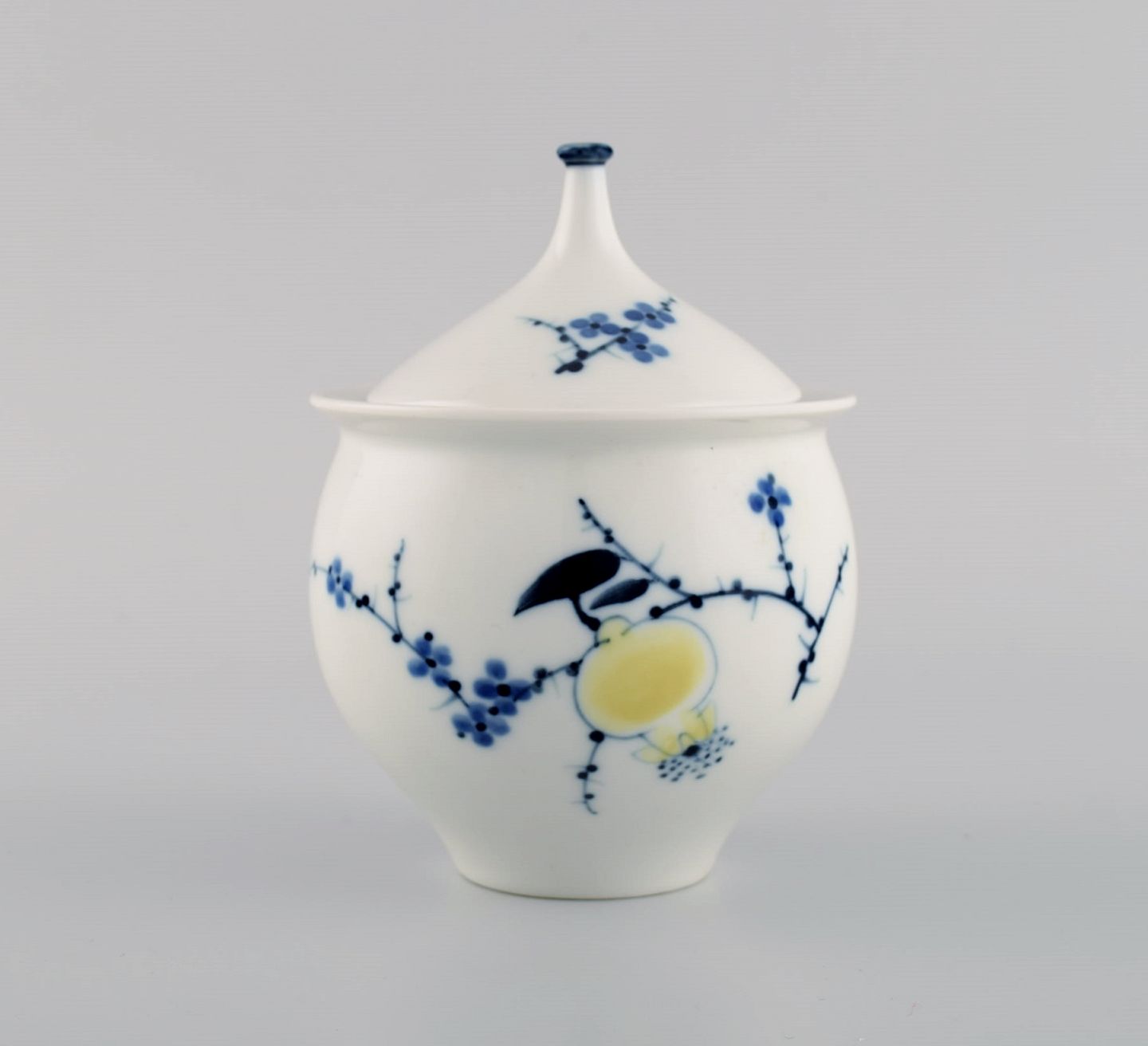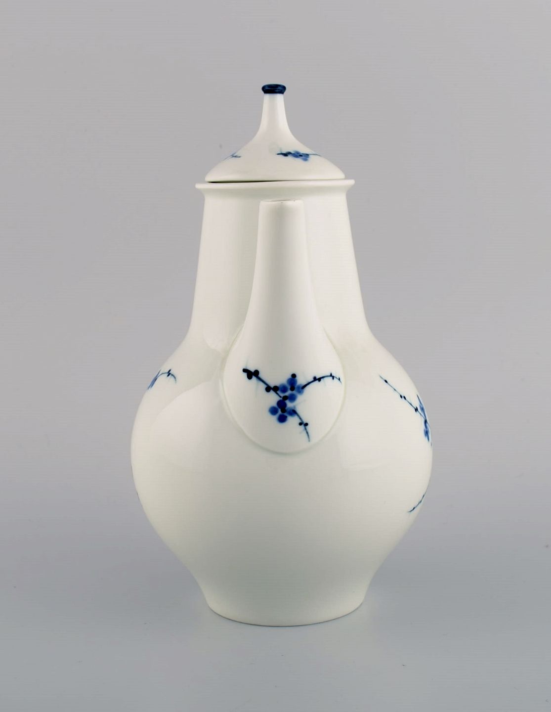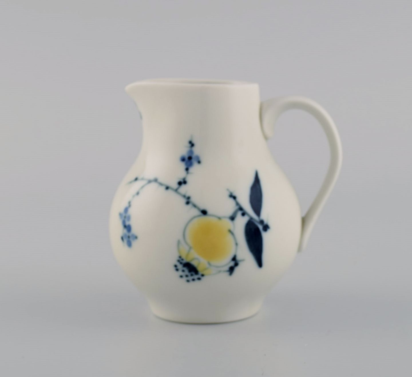 Johannes Hedegaard for Royal Copenhagen. Sjælden Rimmon kaffekande med sukker/fløde sæt i håndmalet porcelæn. Dateret 1967.